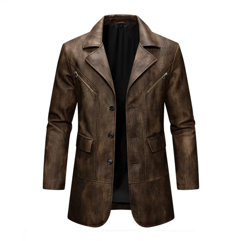 FZ Men's Vintage PU Leather Turn Down Collar Blazer Jacket combines timeless tailoring with modern warmth.