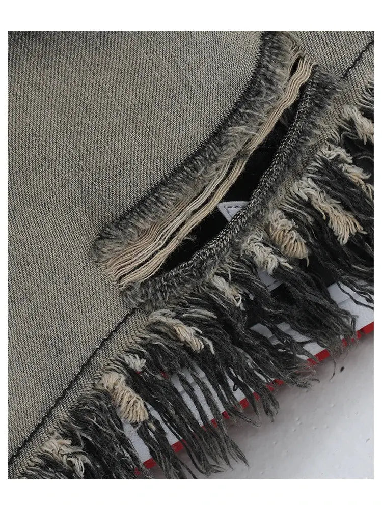 This stylish denim skirt adds an edgy touch to any outfit, while the A-line design complements all body types. Crafted from high-quality denim, it guarantees lasting durability. Elevate your wardrobe with this must-have piece.