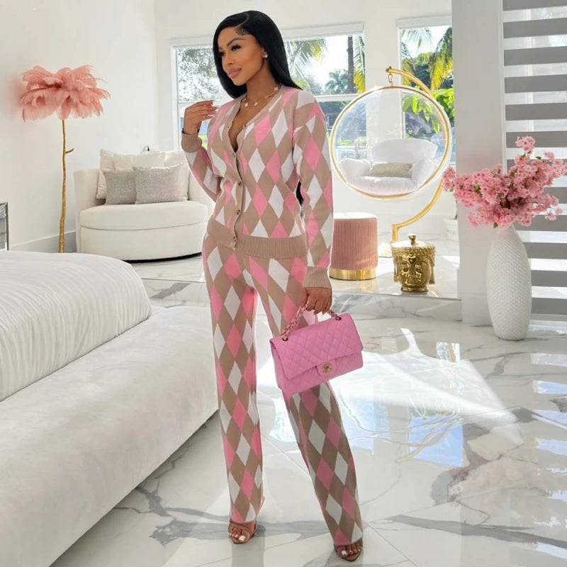 FZ Women's Knitted Sexy Sweater Pants Suit