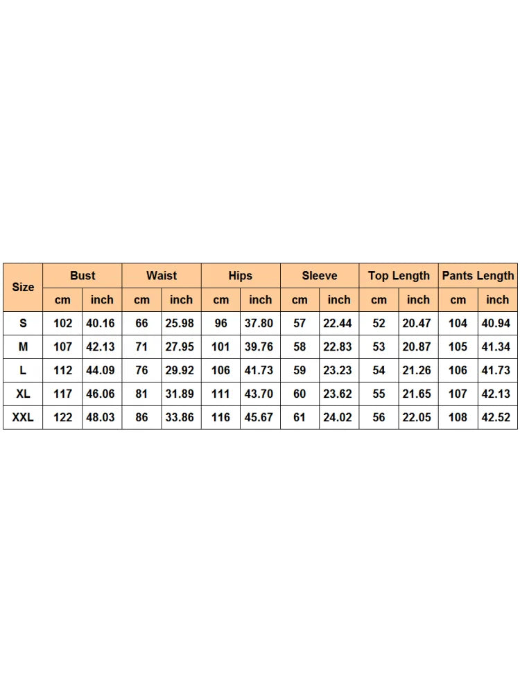 Size Bust Waist Hips Sleeve Top length Pants Length