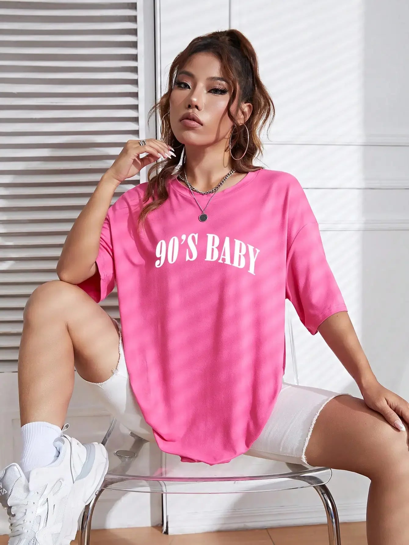 FZ Women's 90's Baby Creativity Letter Cotton Oversized Tee