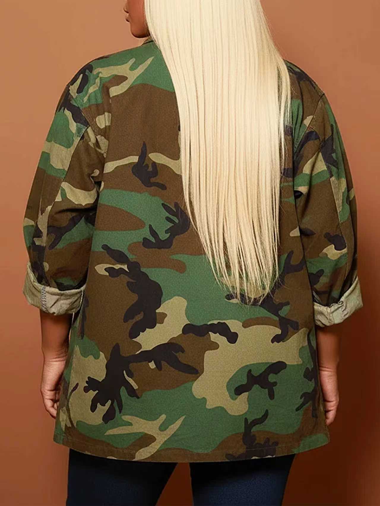 FZ Women's Plus Size Street Long Sleeve Single Breasted Camo Jacket