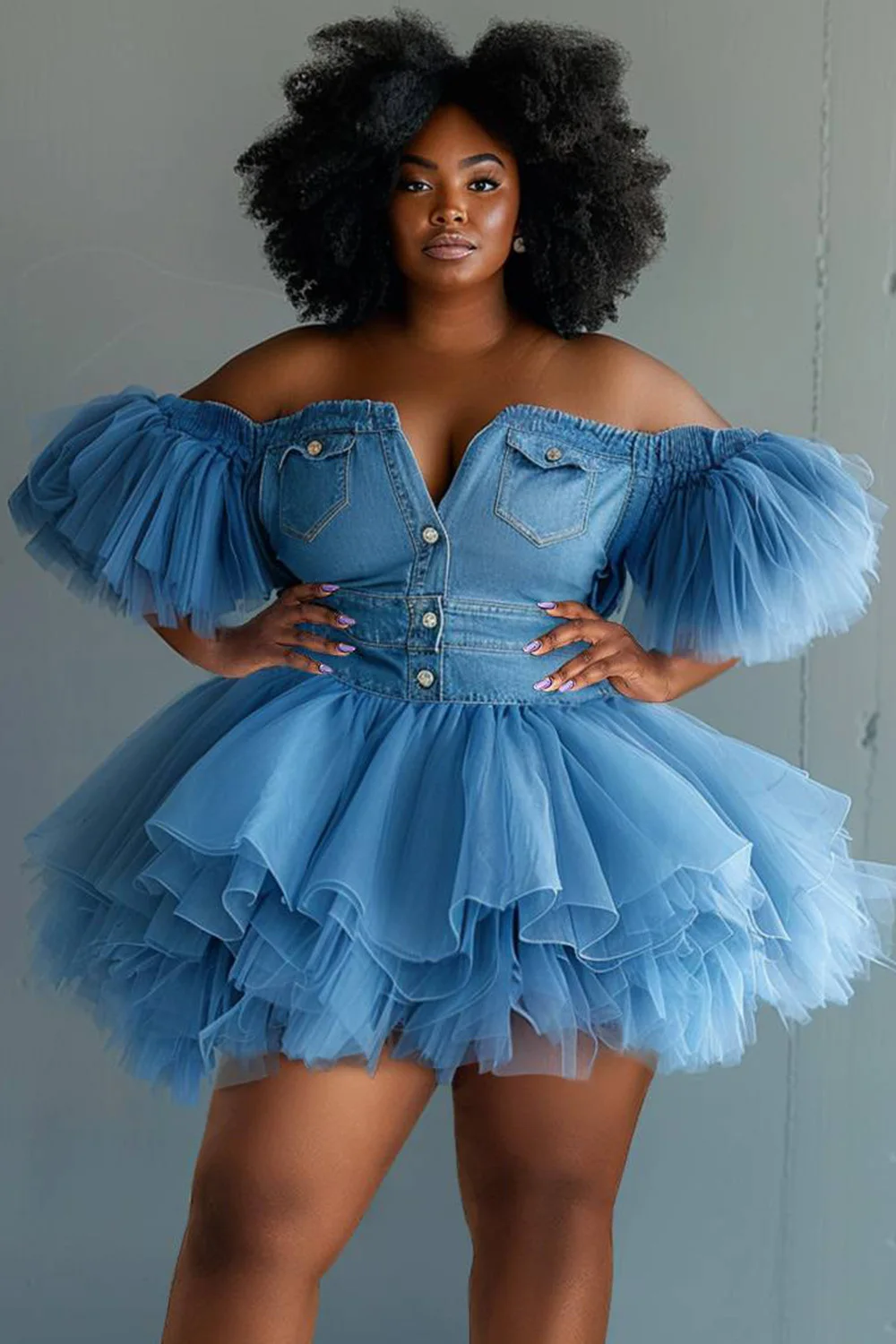 Elevate your wardrobe with the FZ Women's Plus Size Off The Shoulder Mini Denim Dress.