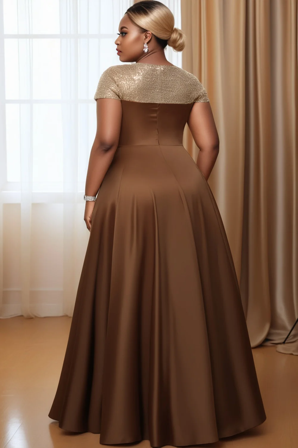 Crafted from smooth satin, this maxi dress fold contrast detail adds a refined touch, while the V-neck and short sleeves create a flattering silhouette. Designed to enhance plus-size figures, this maxi dress offers both style and ease for special occasions or sophisticated everyday wear.