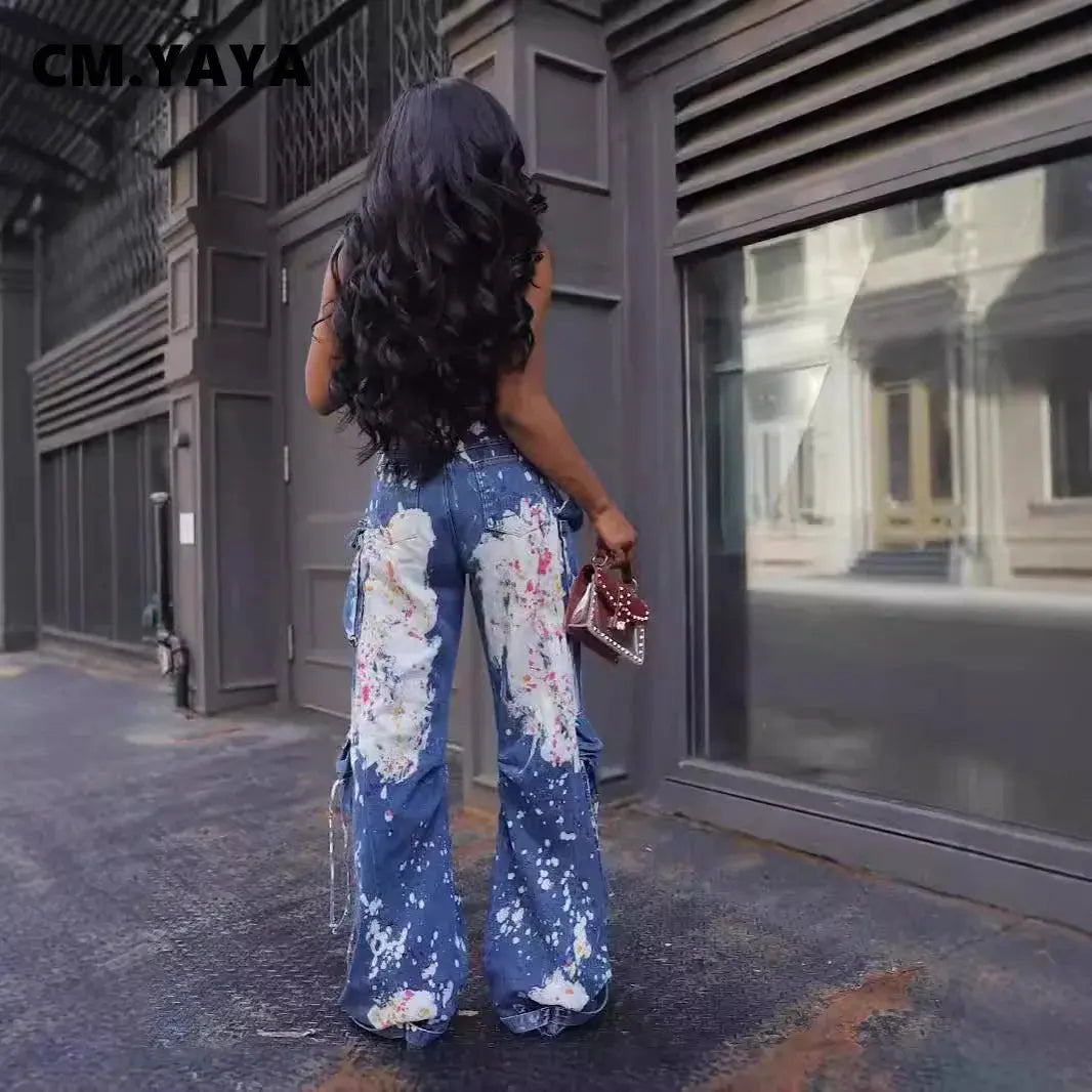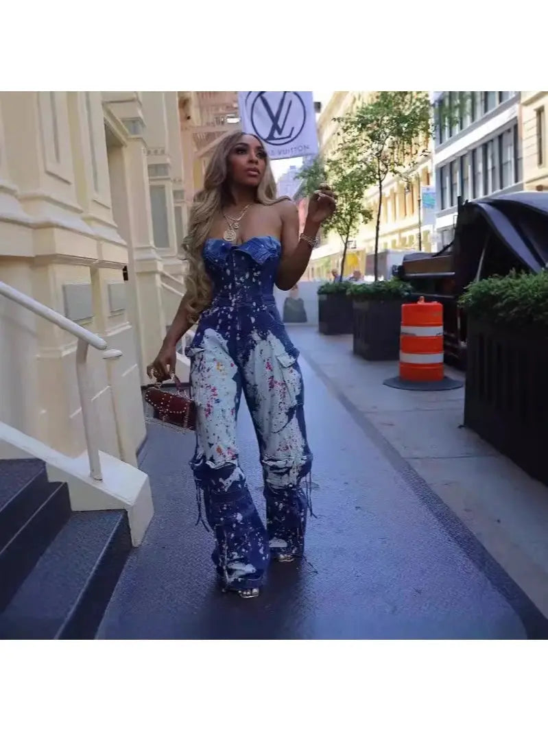 Discover the perfect balance between style and practicality with our FZ Women's Graffiti Multi Pocket Wide Leg One Piece Denim Jumpsuit.