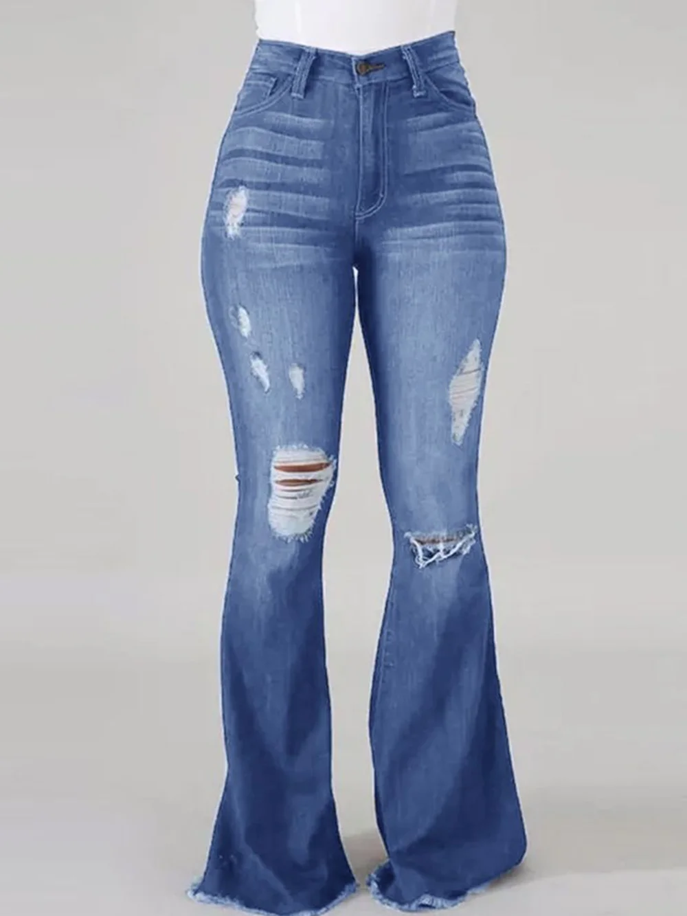 FZ Women's High Waisted Denim Bootcut Flared Ripped Denim Pants