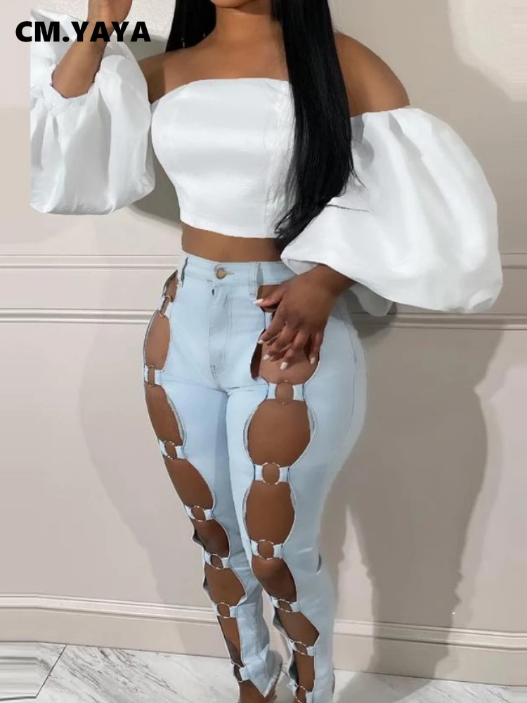 FZ Women's Streetwear Pencil Hollow Out Stretch Ripped Denim Pants combine contemporary style with comfort.