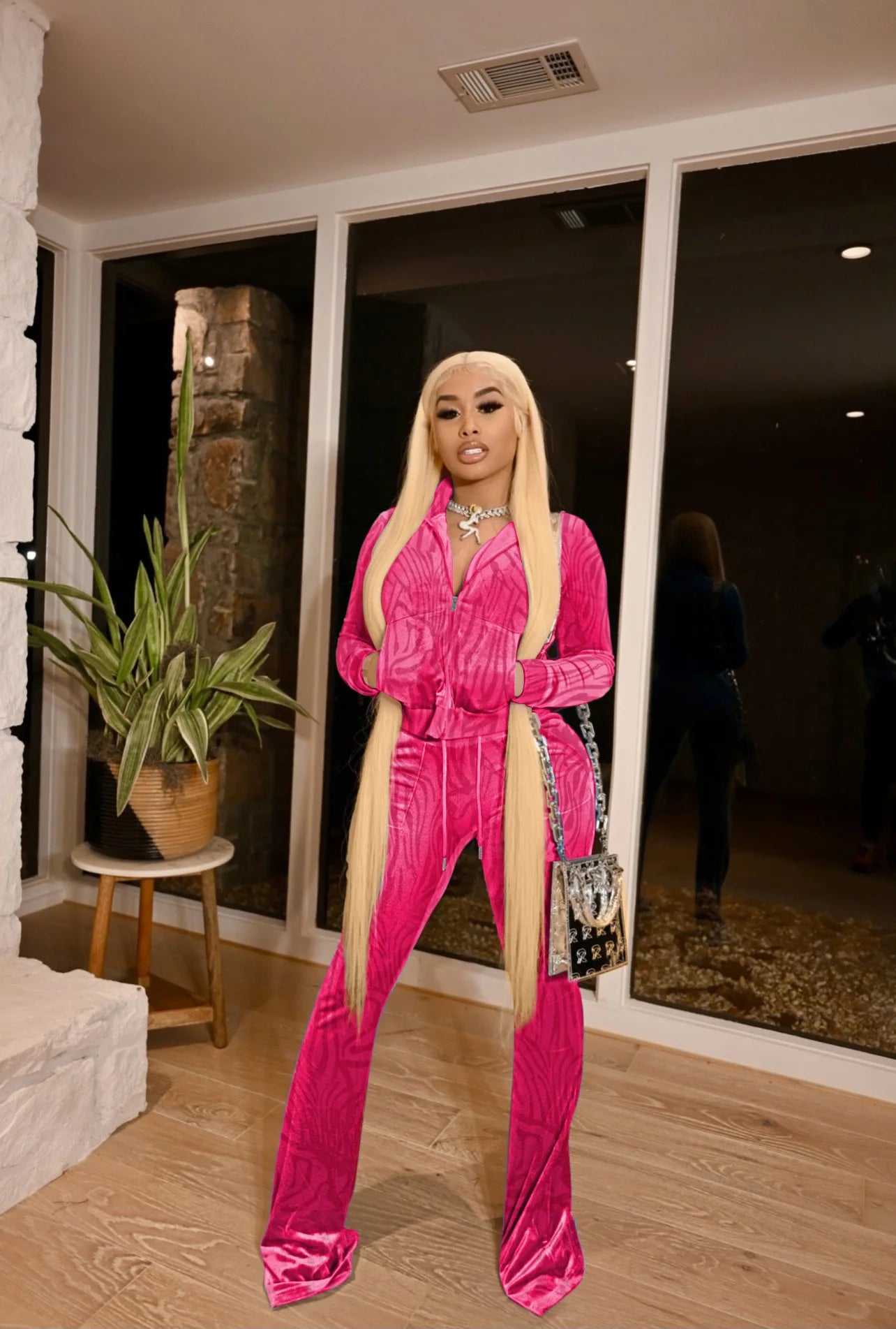 FZ Women's Stripe Print Two Pieces Pants Suits