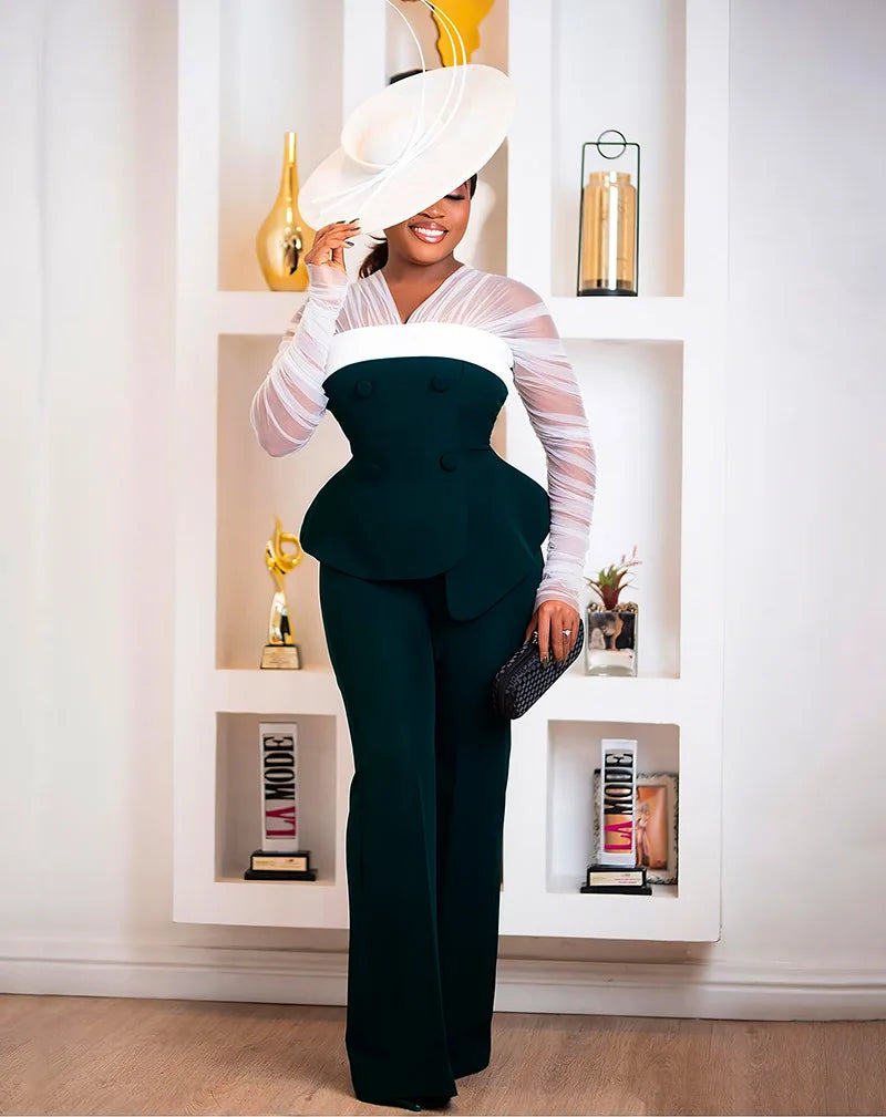This elegant and cute two-piece pants suit from FZ Women is the perfect addition to your wardrobe. The pullover design and long sleeves provide a stylish and comfortable fit. Expertly crafted with high-quality materials, this suit exudes sophistication and versatility, making it a must-have for any fashion-forward individual.