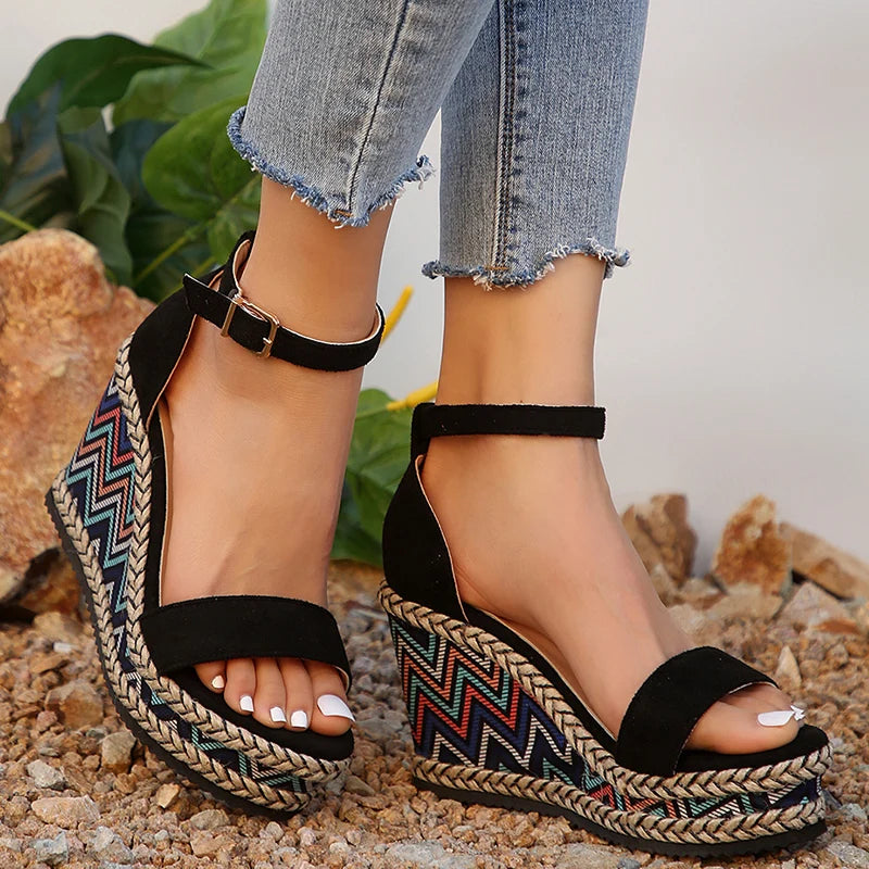FZ Women's Ankle Strap Wedge High Heels Platform Sandals