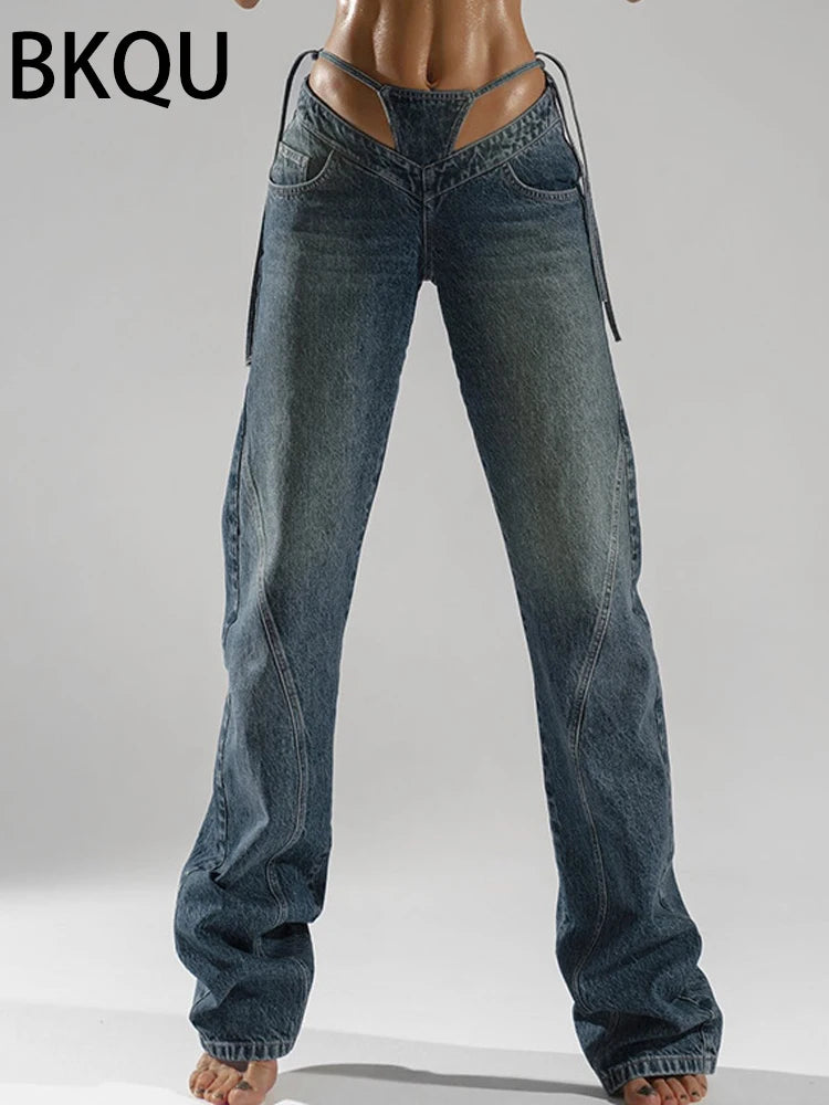 Discover the perfect blend of style and comfort with our FZ Women's Sexy Lace-up Patchwork Straight Denim Long Pants. Featuring a charming lace-up design and eye-catching patchwork details, these pants will add a touch of cuteness and sexiness to any outfit. Elevate your wardrobe with this must-have piece.