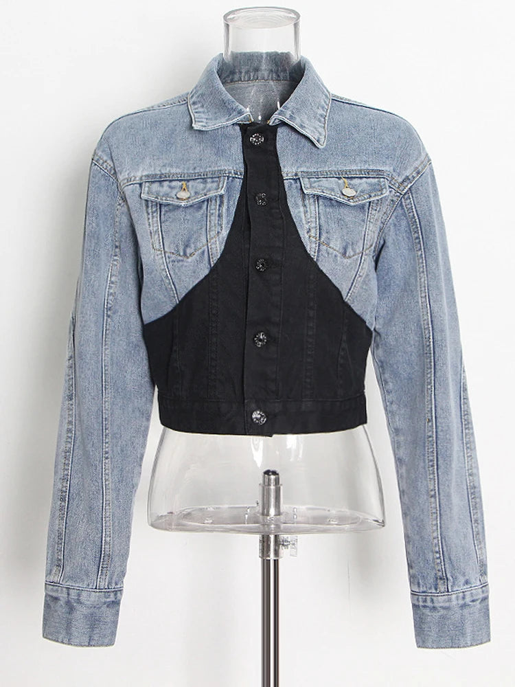 FZ Women's Skinny Pencil High Waisted Contract Color Patchwork Denim Long Pants Suit