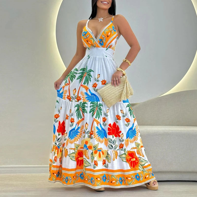 FZ Women's Floral Print Spaghetti Strap Sexy Backless Sundress
