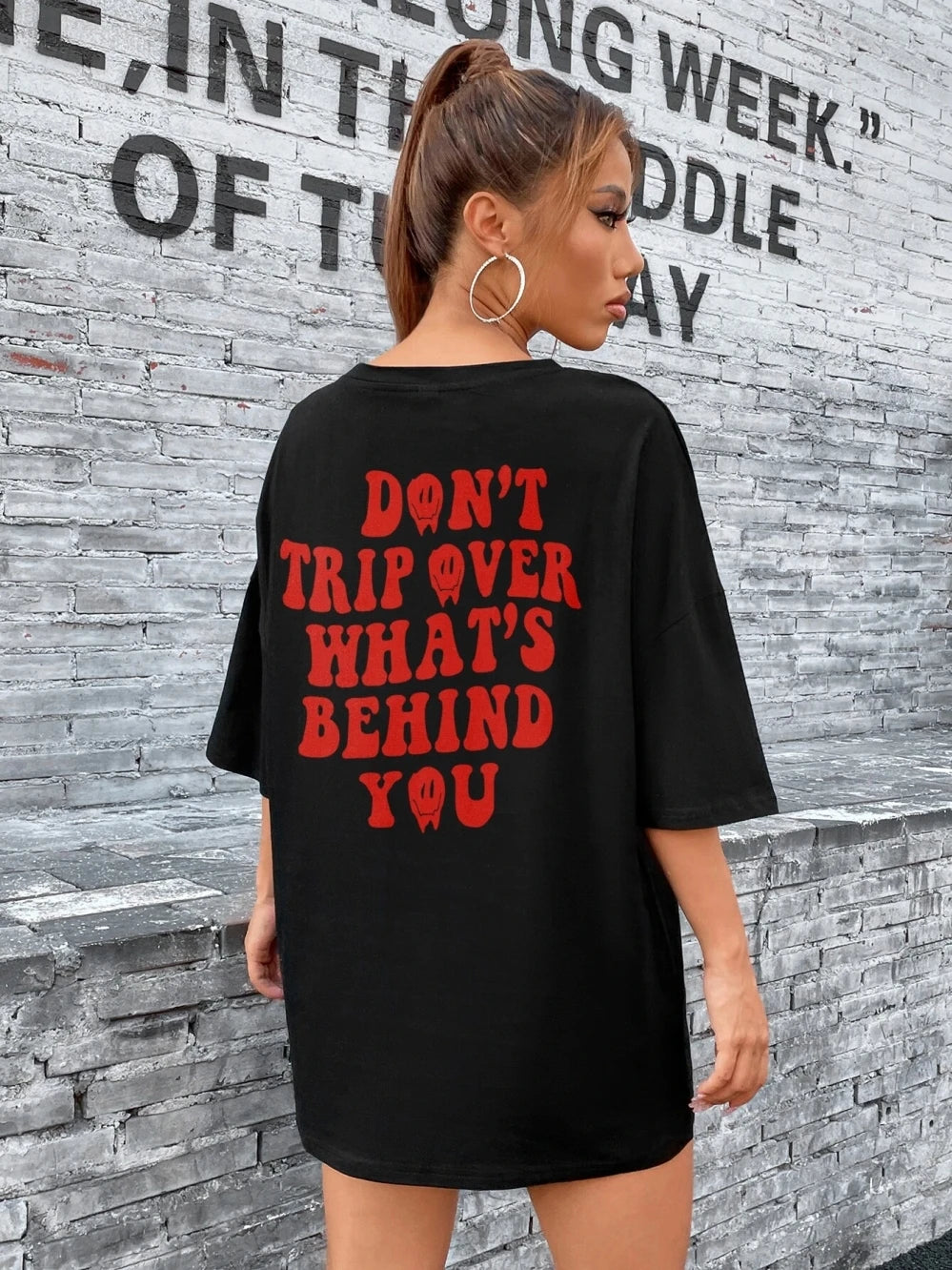 FZ Women's Don't Trip Over What's Behind You Fashion Street Oversized Tee
