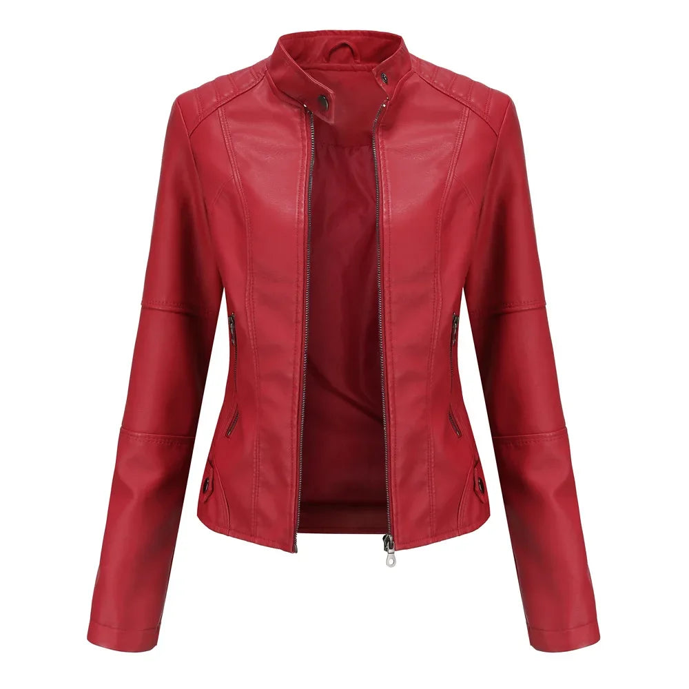 FZ Women's Faux Leather Moto Biker Zipper Jacket