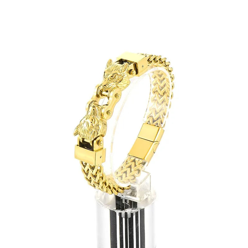 Elevate your style with the FZ Stainless Steel Multiple Color Double Wolf Hand Wrist Net Chain Bracelet.