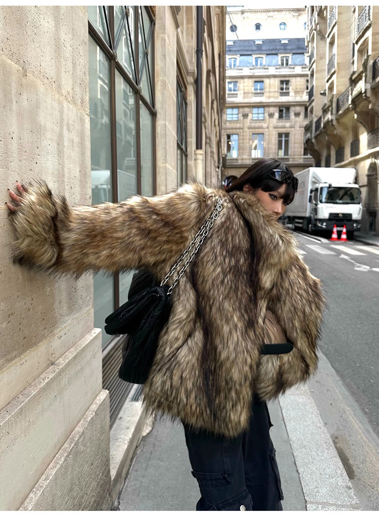 This stylish jacket features a furry texture, perfect for chilly days. Made with quality materials, it will keep you cozy and fashionable. Upgrade your outerwear game with this must-have jacket!