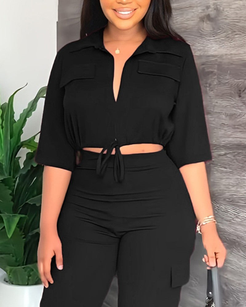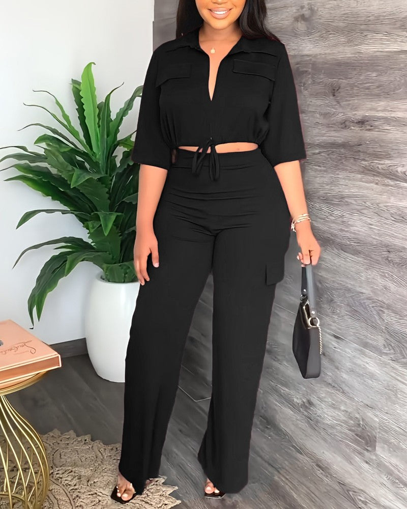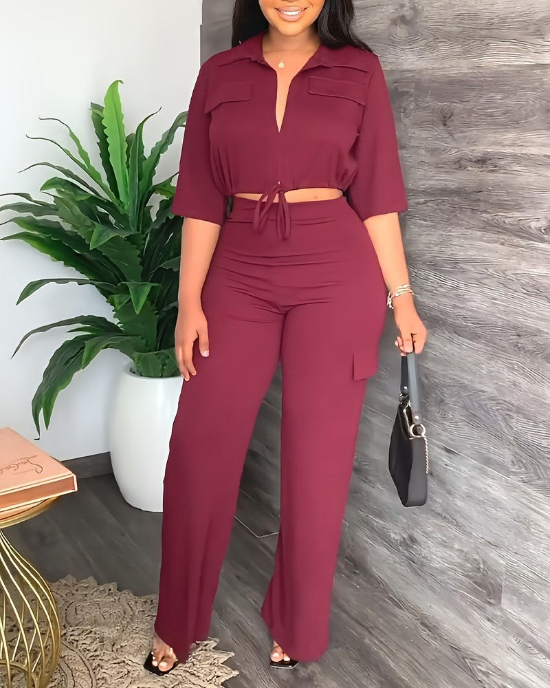 Bring out your inner fashionista and stay comfortable in the FZ Women's Flap Detail Drawstring Pants Set. This set features an ultra-cute and sexy design combined with a relaxed fit to ensure optimum comfort. This beautiful, stylish set will make you look amazing without compromising on your comfort.