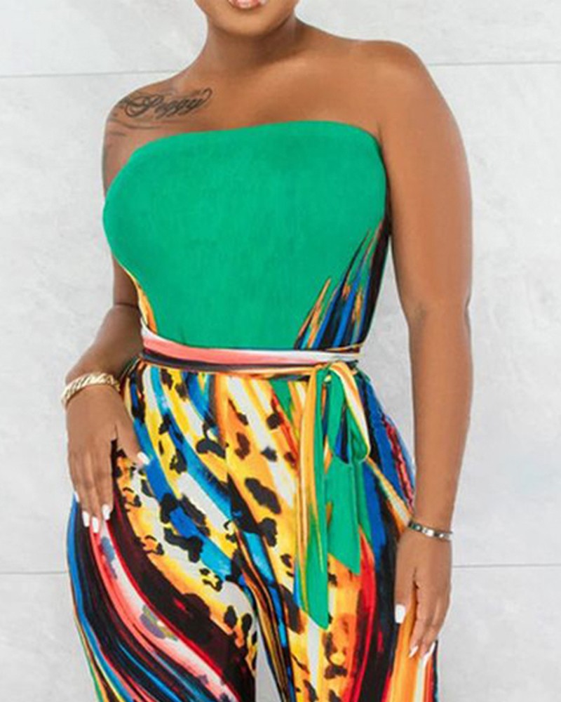 FZ Women's Leopard Print Bandeau Wide Leg Jumpsuit