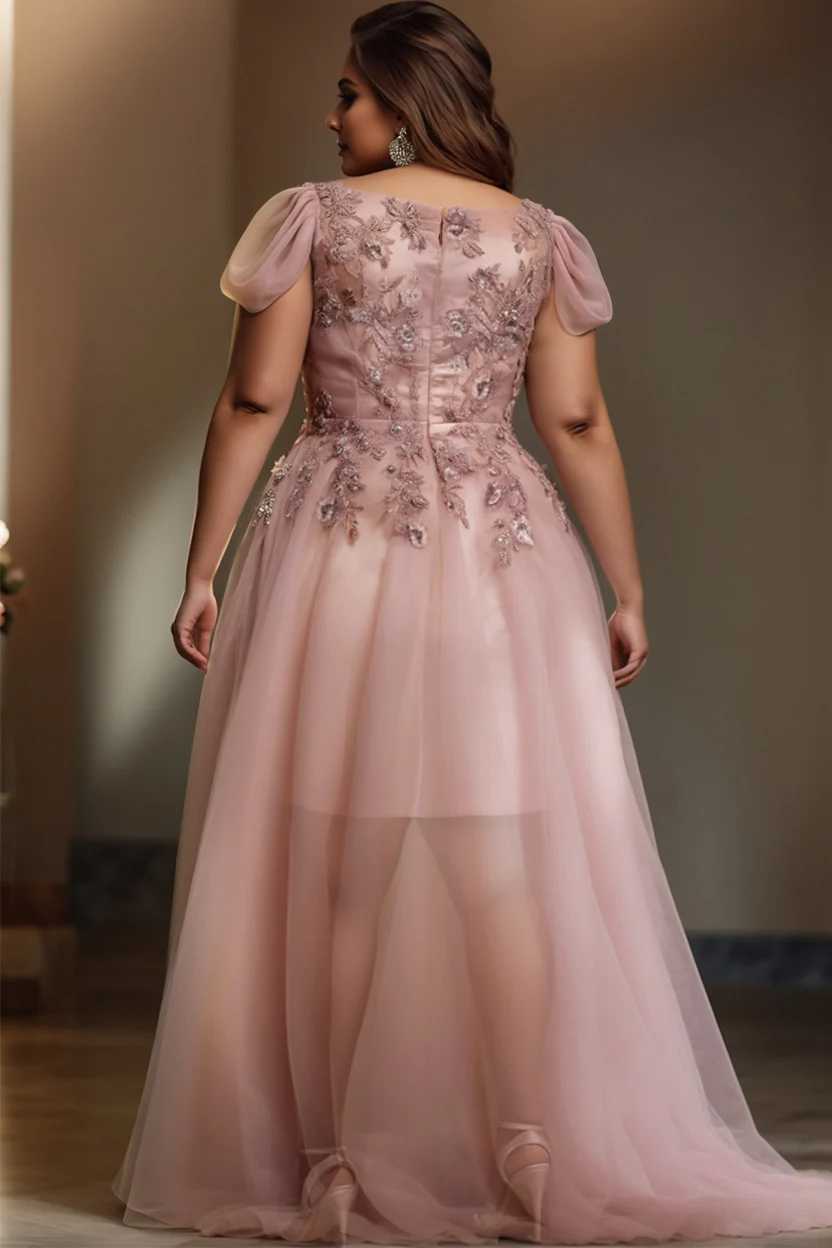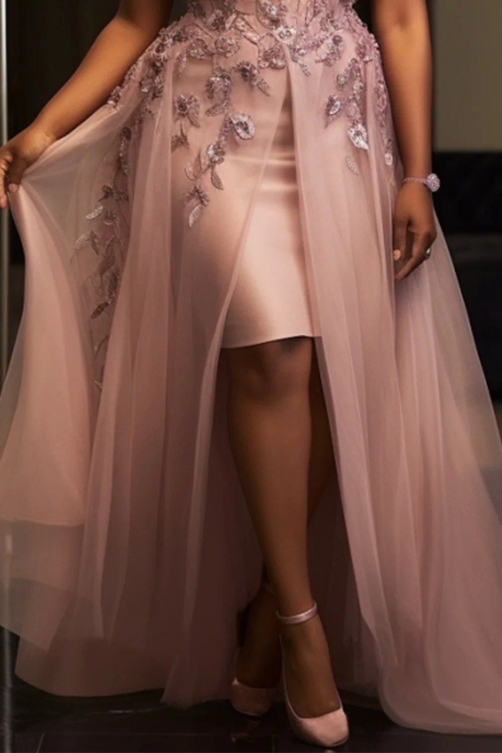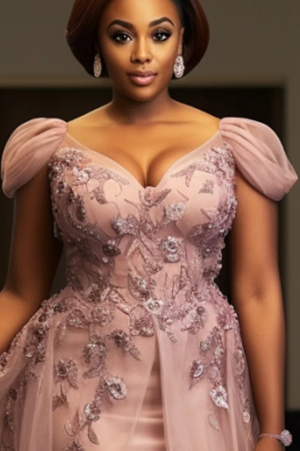 Elevate your evening attire with this meticulously crafted plus-size midi evening dress.