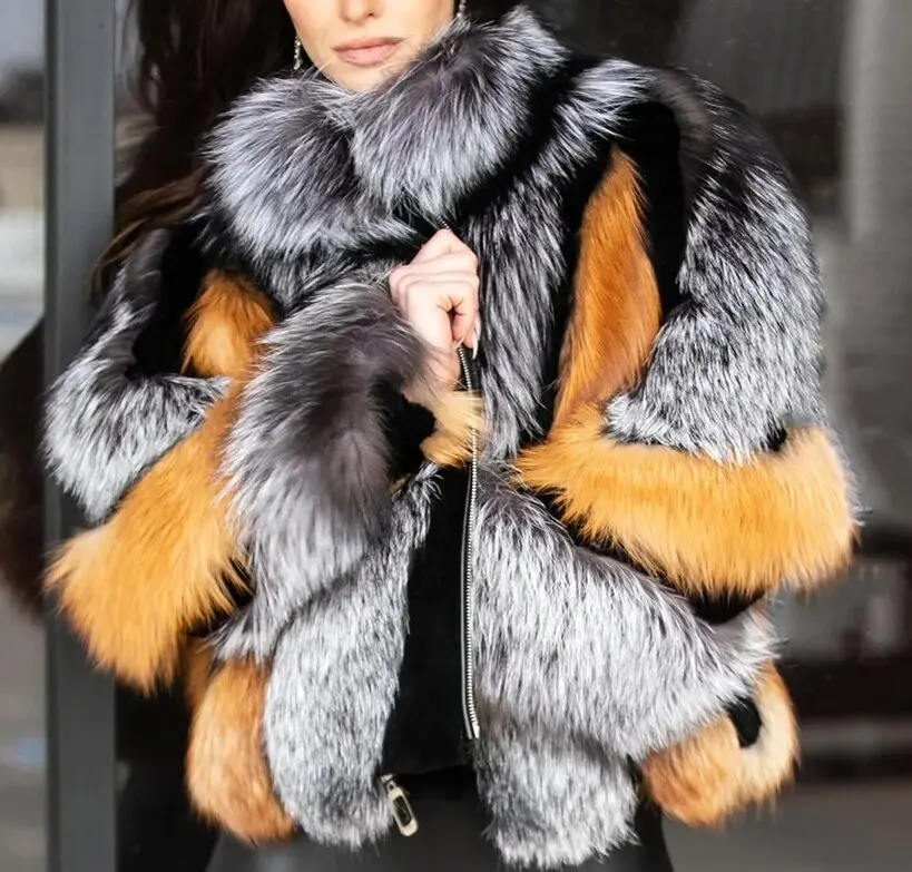 FZ Women's Thick Warm and Fashionable Real Red Fox Fur Jacket