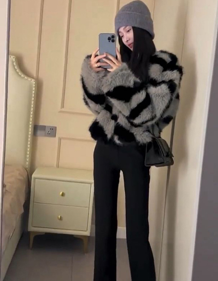 FZ Women's Zebra Pattern Faux Fur Short Classic Plush Jacket