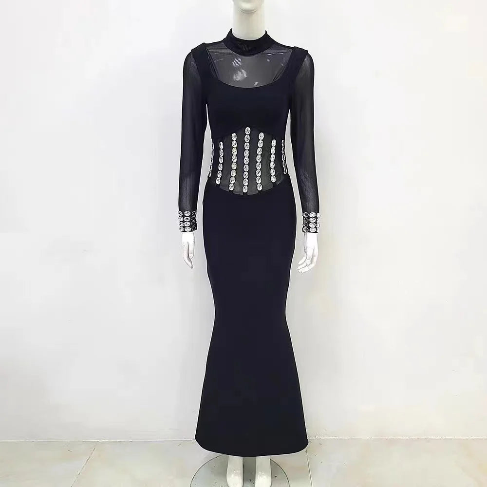 Elevate your evening look with our FZ Women's Long Sleeve Sexy Big Crystal Evening Cocktail Dress.