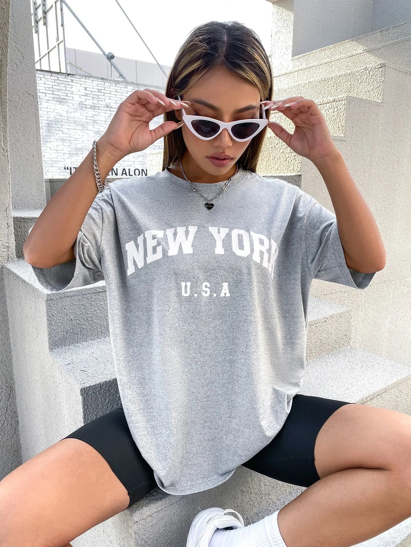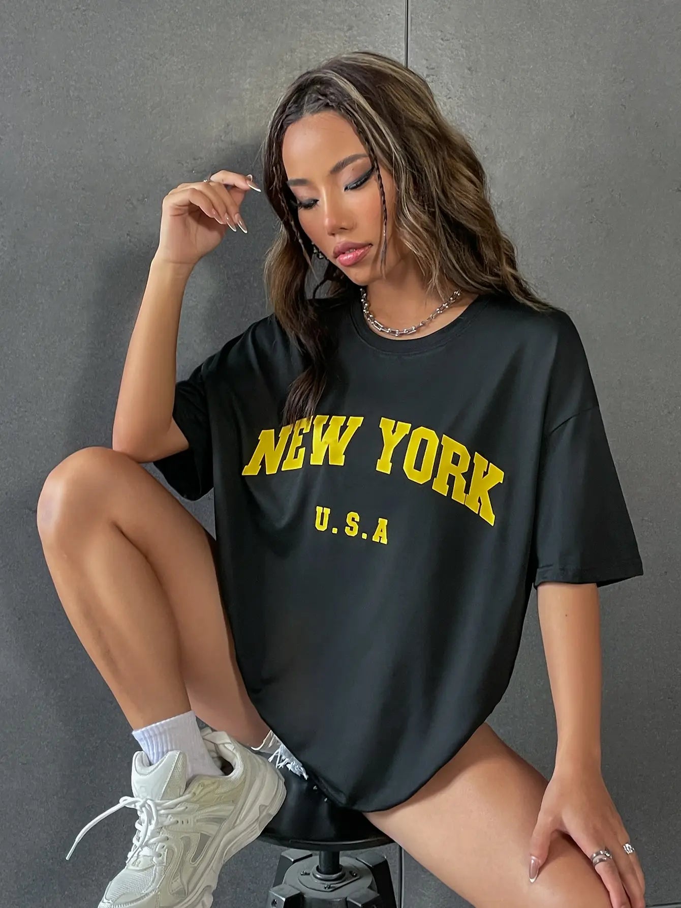 FZ Women's NEW YORK U.S.A Street Letter Style Printed Oversized Tee