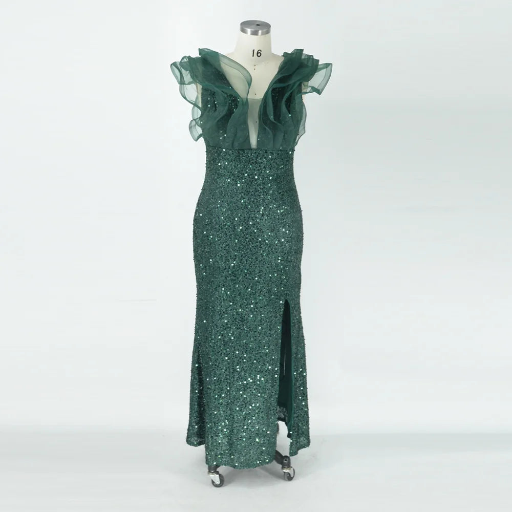 FZ Women's Plus Size V-neck Tiered Sleeve Sexy Slit Elegant Evening Dress