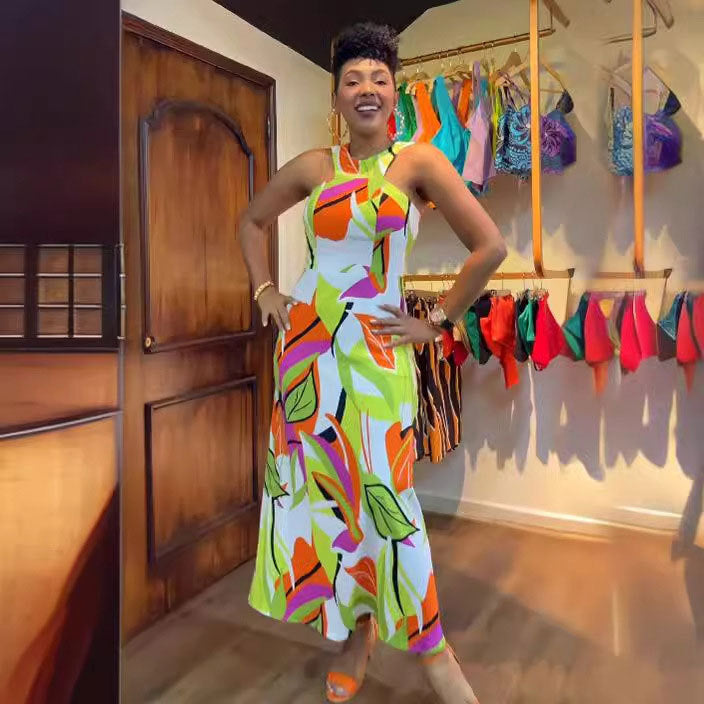 FZ Women's Printing Sleeveless Cold Shoulder Slim Vest Sundress