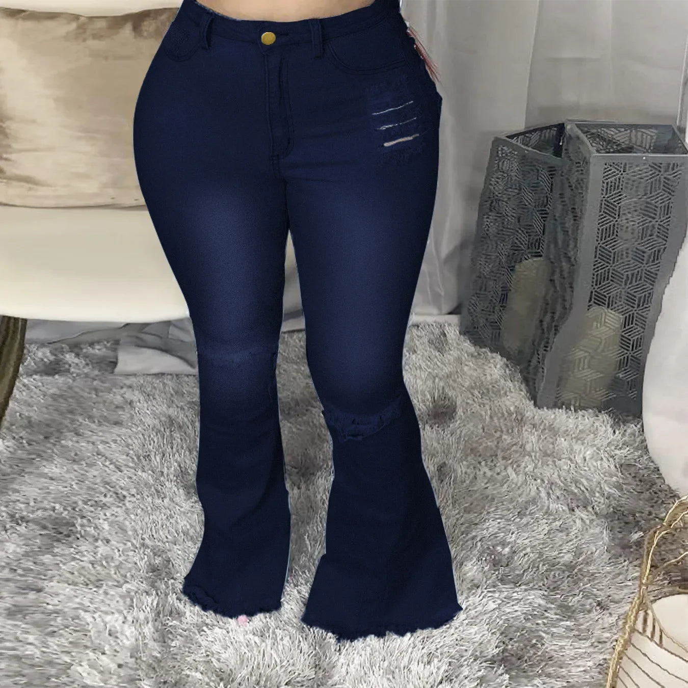 These FZ Women's Hole Hollow Out Flared High Waisted Button Skinny Denim Pants bring a cute and sexy touch to your wardrobe.