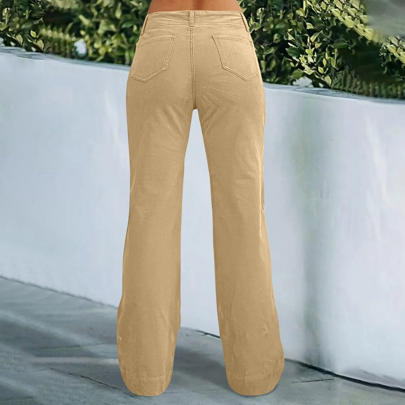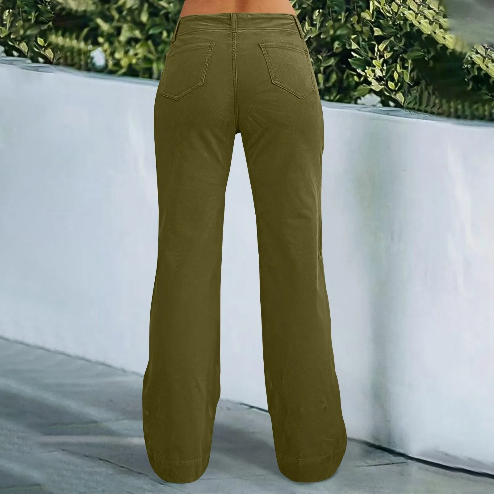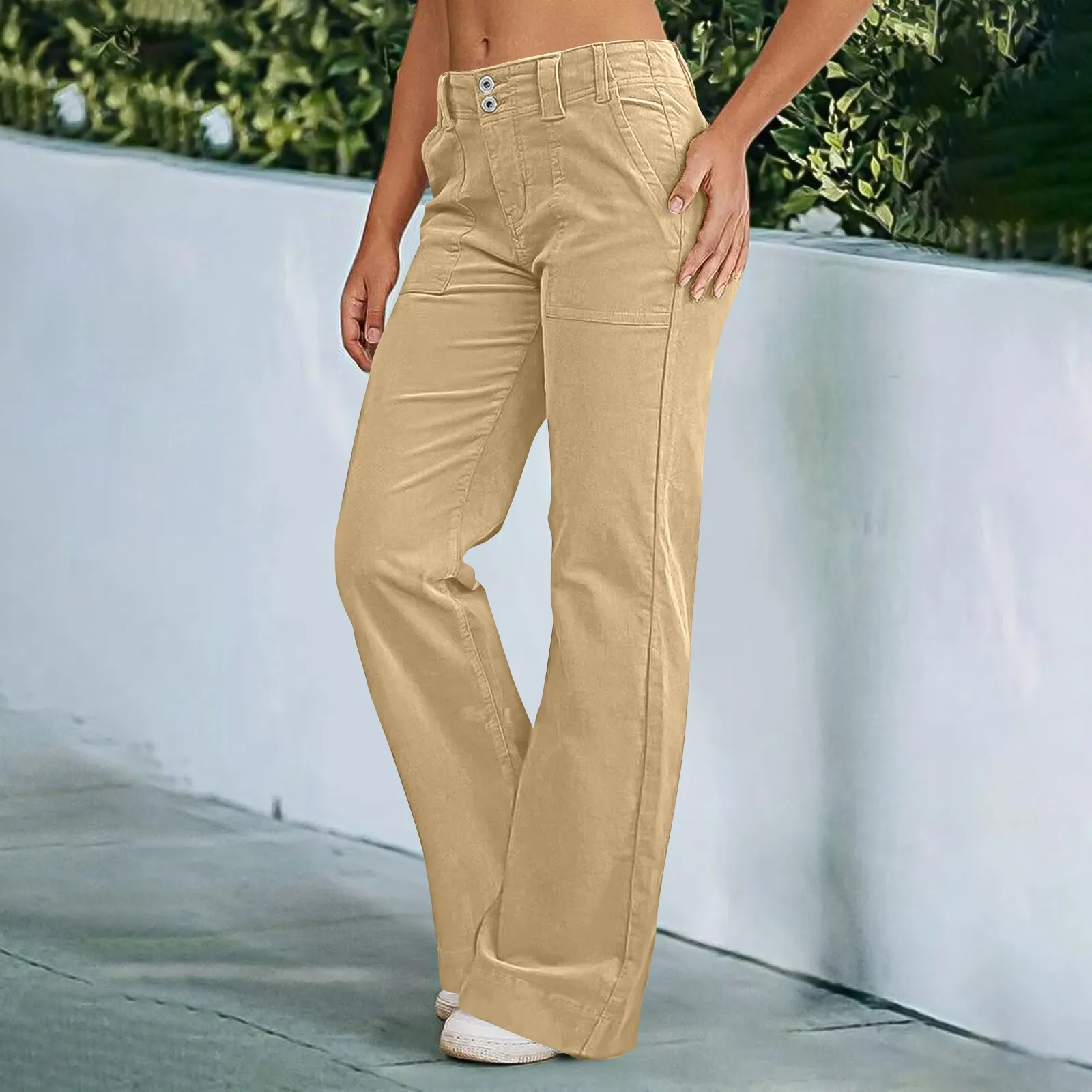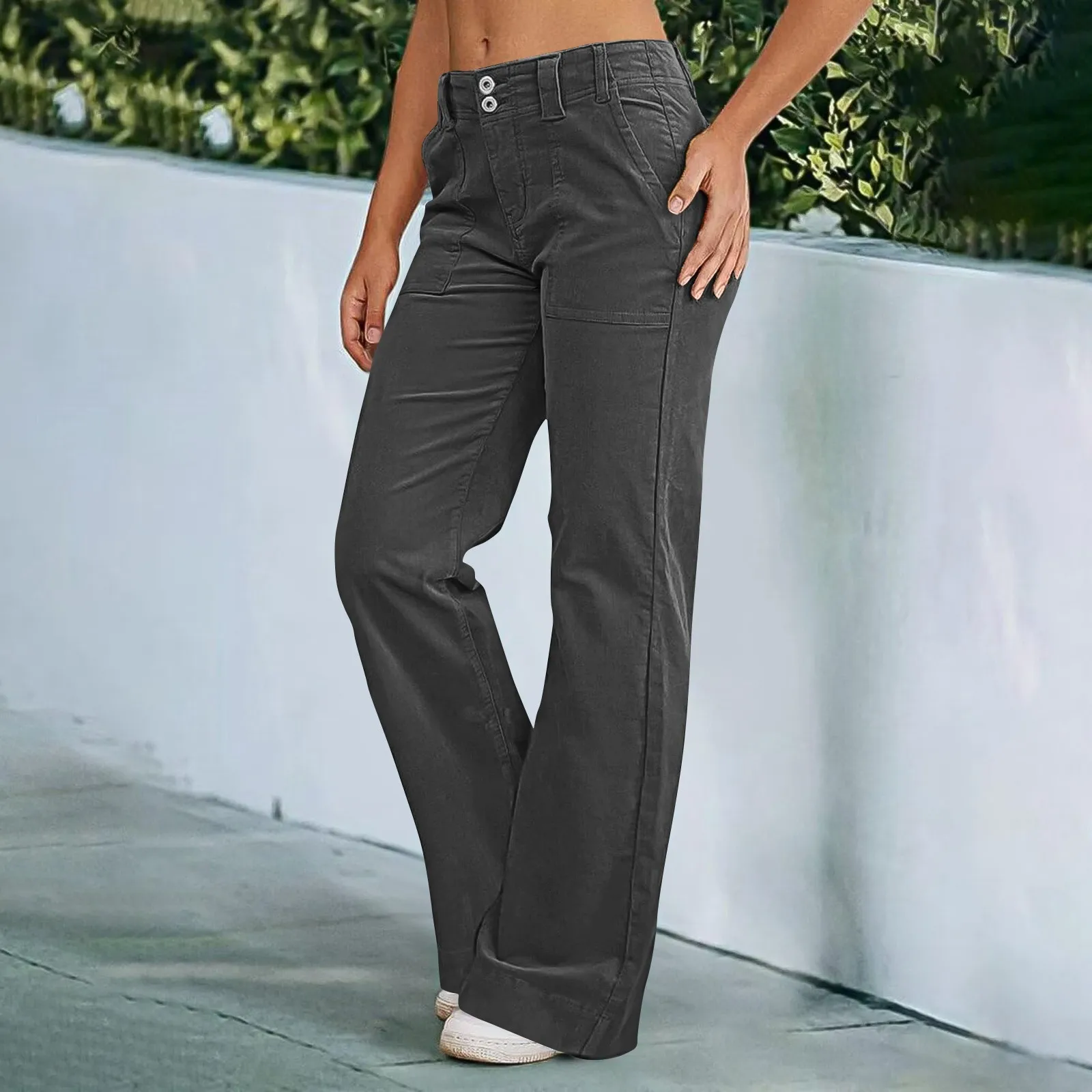 FZ Women's Casual Wide Leg Pants High Waisted Solid Button Down Straight Cargo Pants