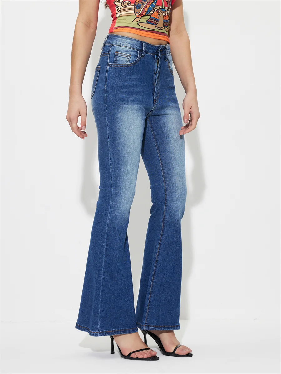 FZ Women's Flared Vintage Mid Waisted Slim Fit High Elastic Denim Pants
