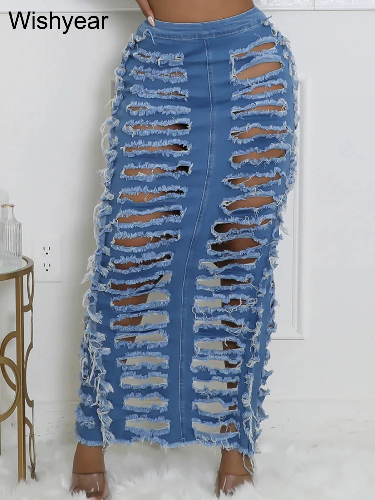 This FZ Women's Hollow Out Ripped High Waist Denim Skirt is the perfect combination of style and sexiness.