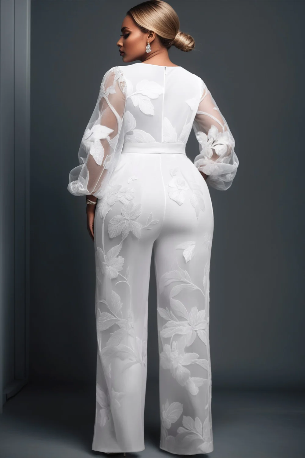 FZ Women's Plus Size V Neck Long Sleeve See Through Jumpsuit
