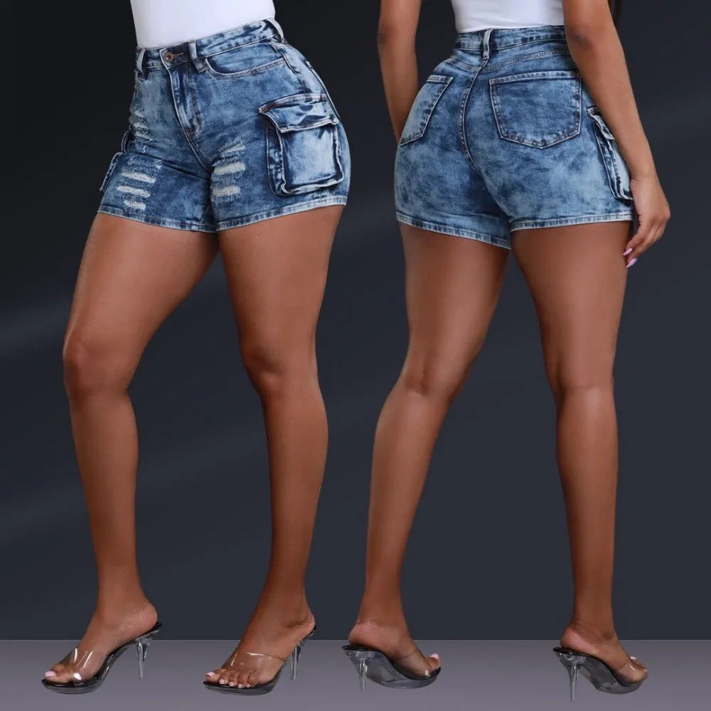 These denim shorts not only have a cute and sexy design, but also feature a comfortable fit and convenient pockets. Enjoy the perfect combination of style and functionality.