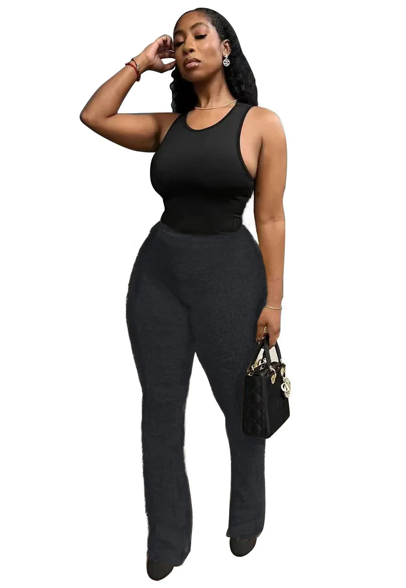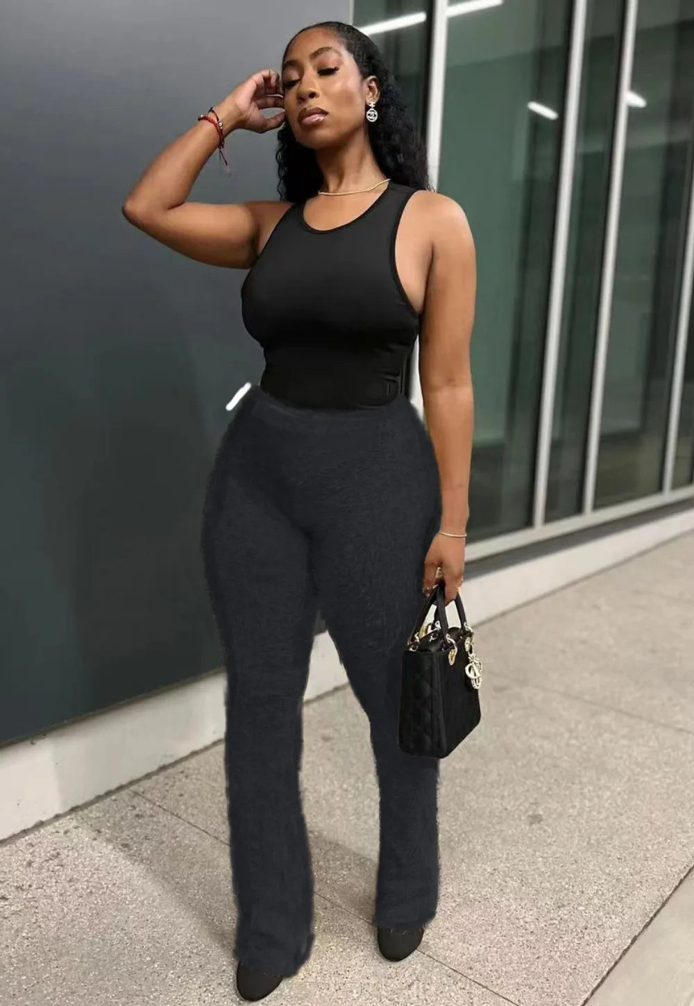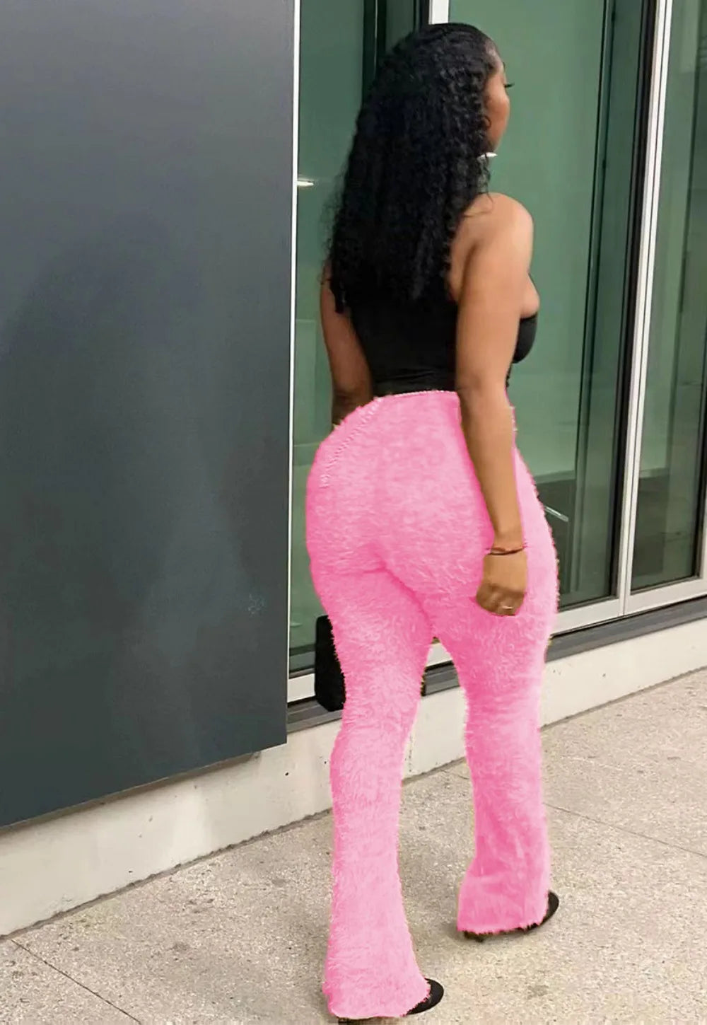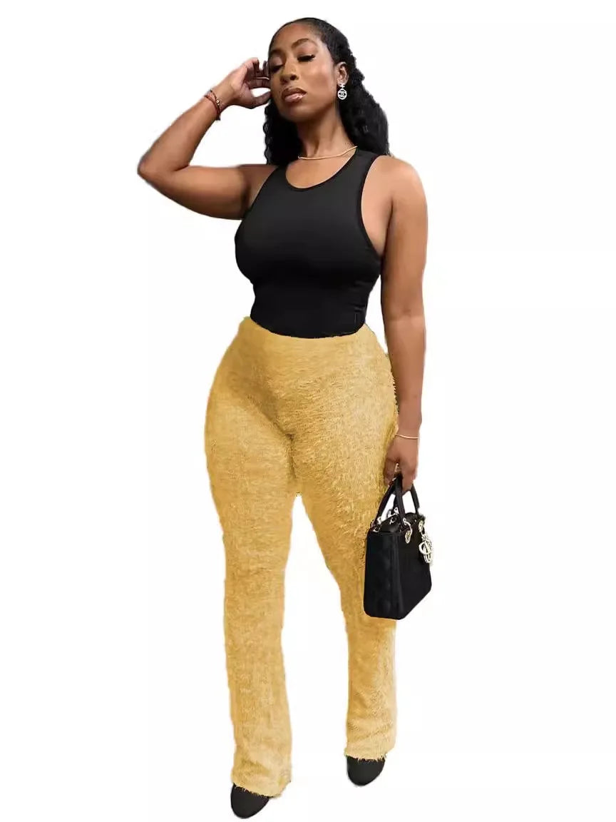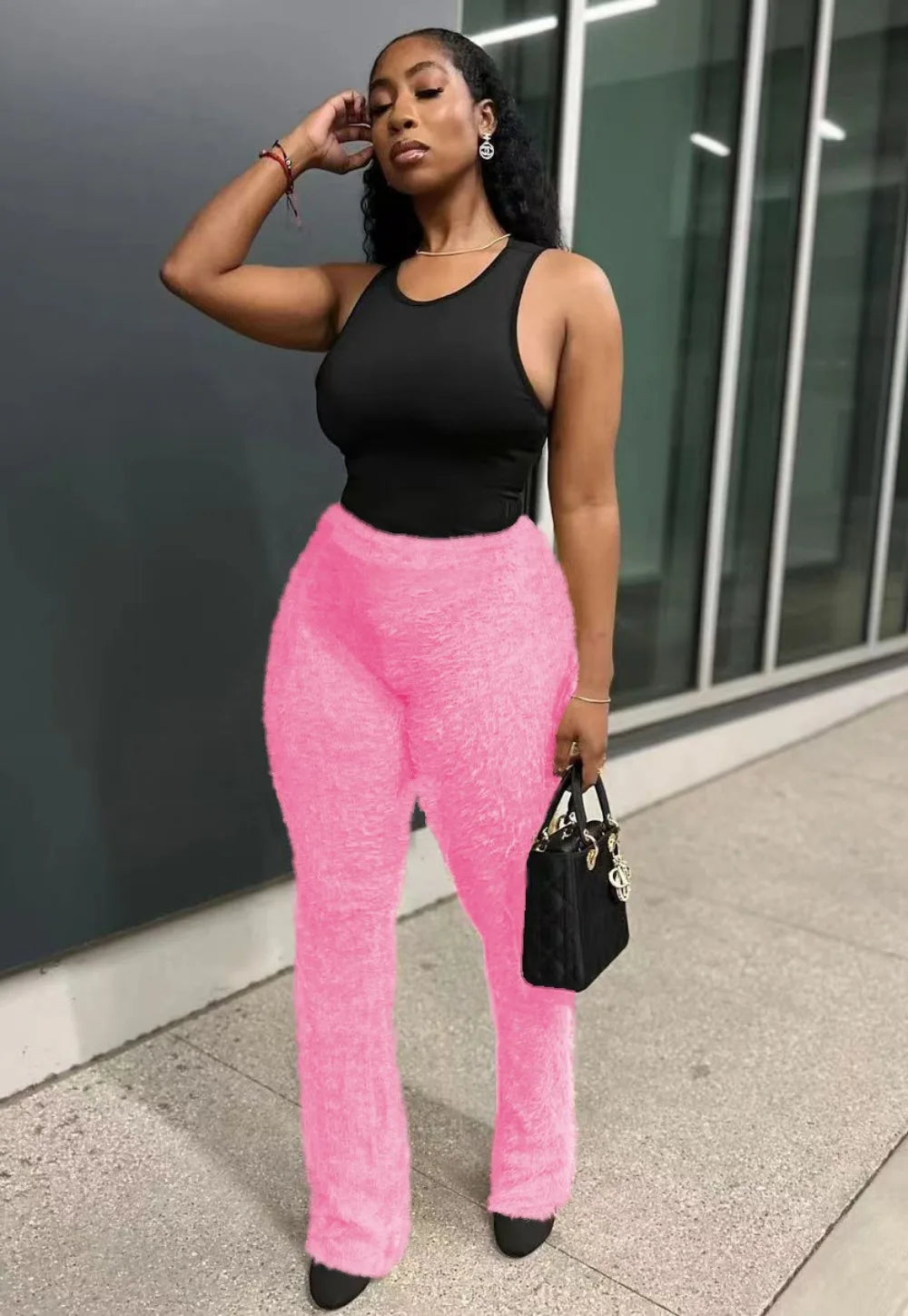 FZ Women's Fur Woolen Skinny High Waisted Solid Color Slim Pants