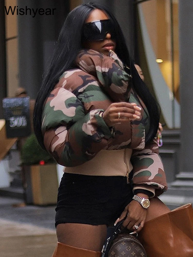 FZ Women's Vintage Camouflage Zipper Puffer Jacket