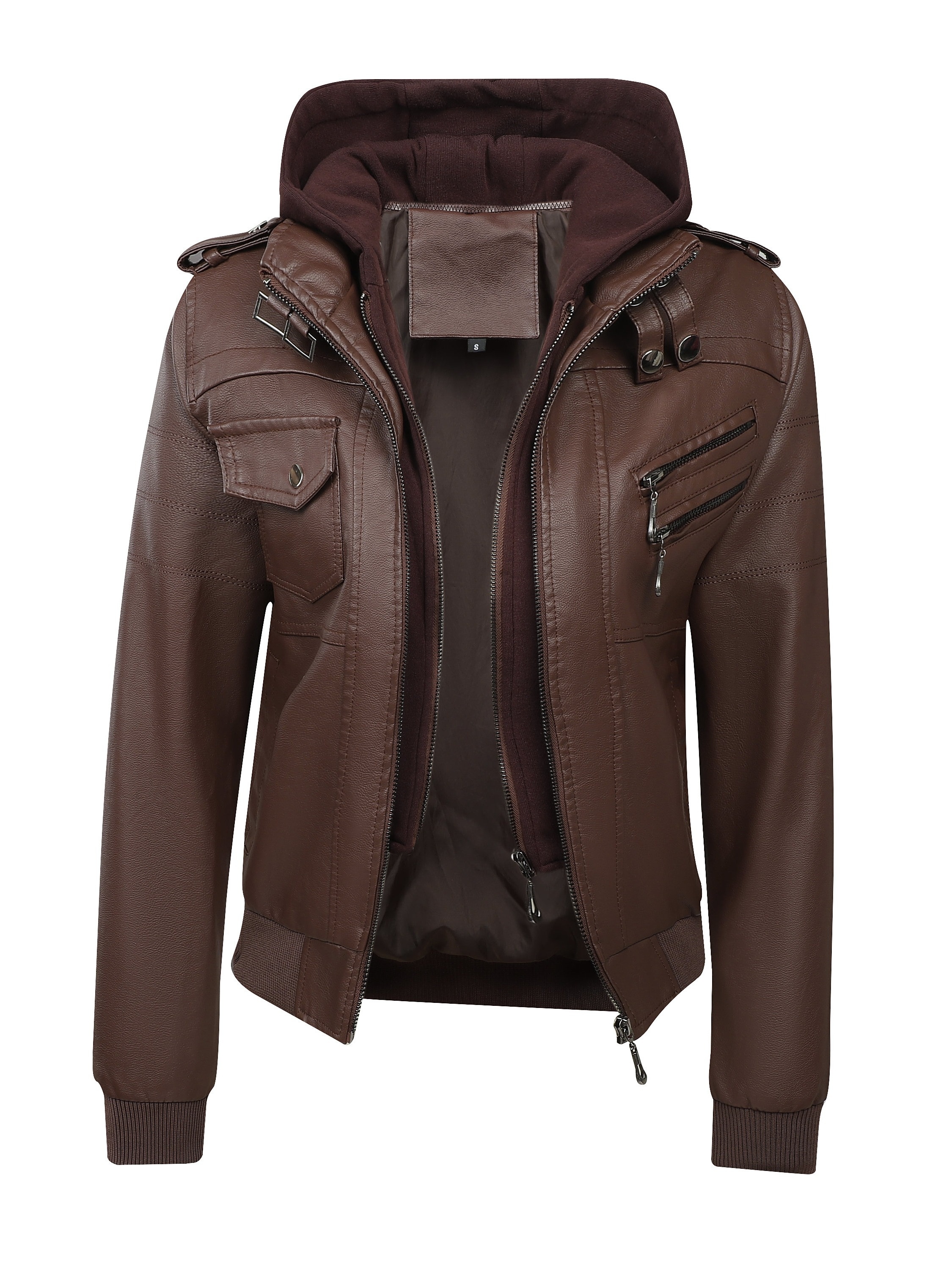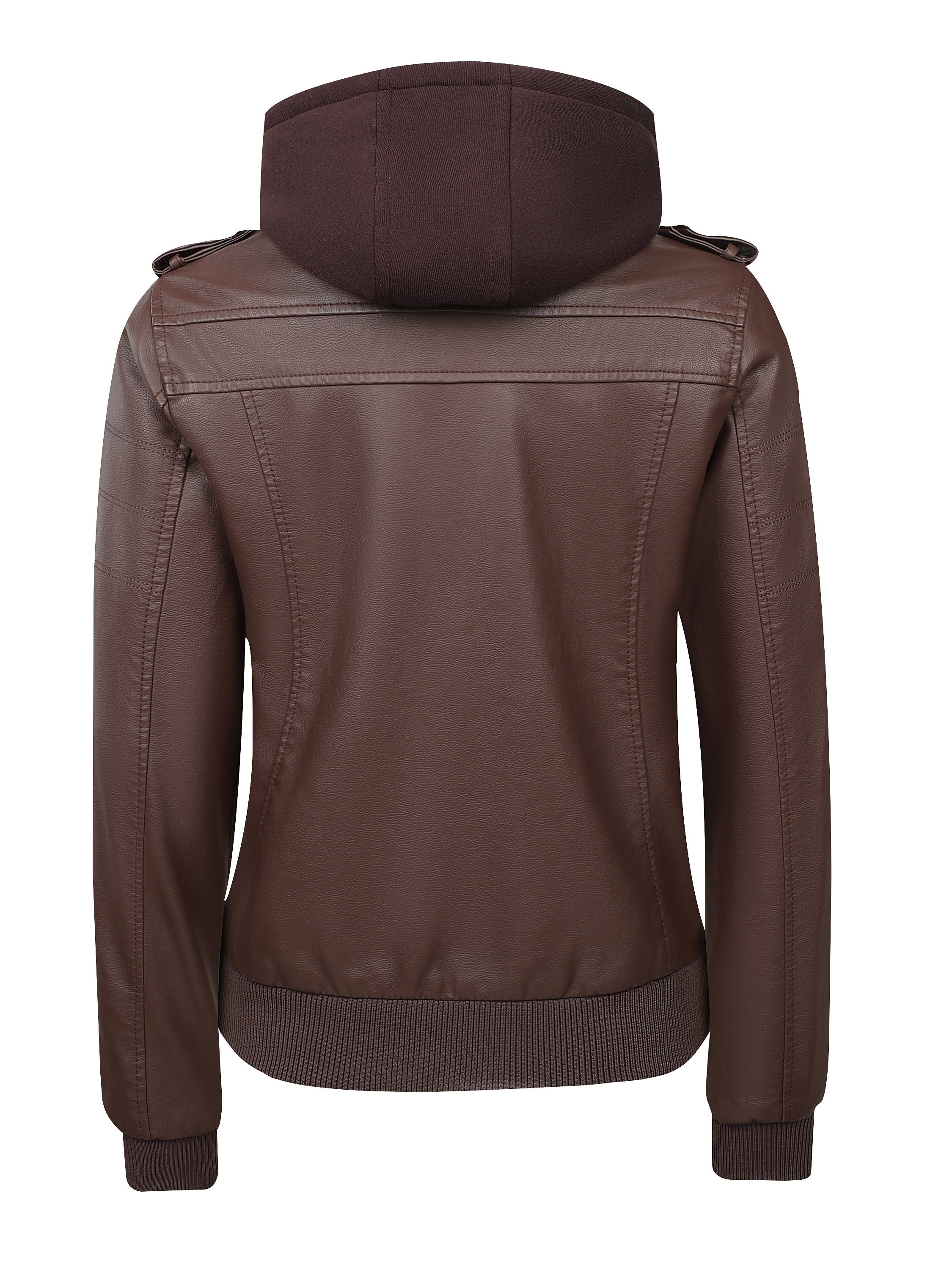 FZ Women's Vintage-Style Detachable Hood PU Leather Jacket