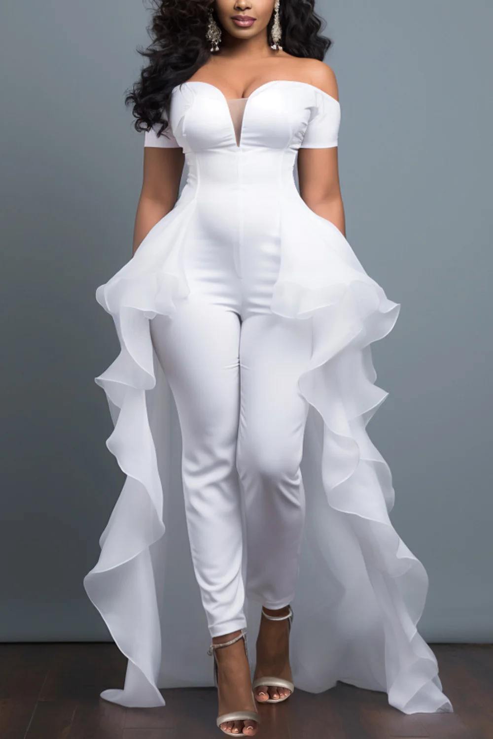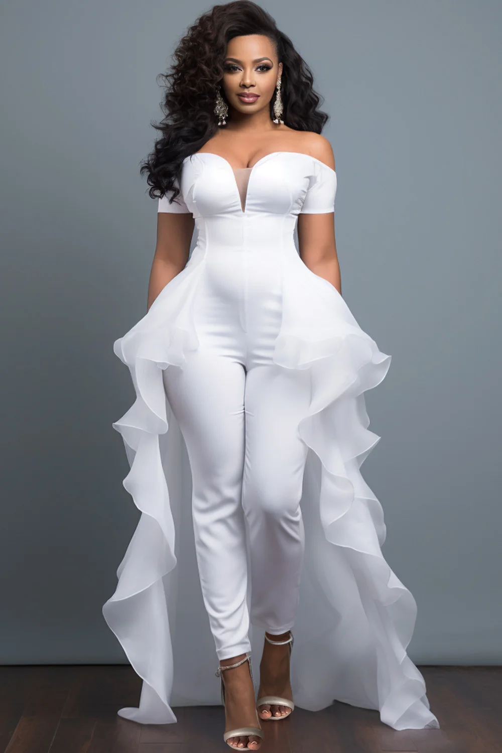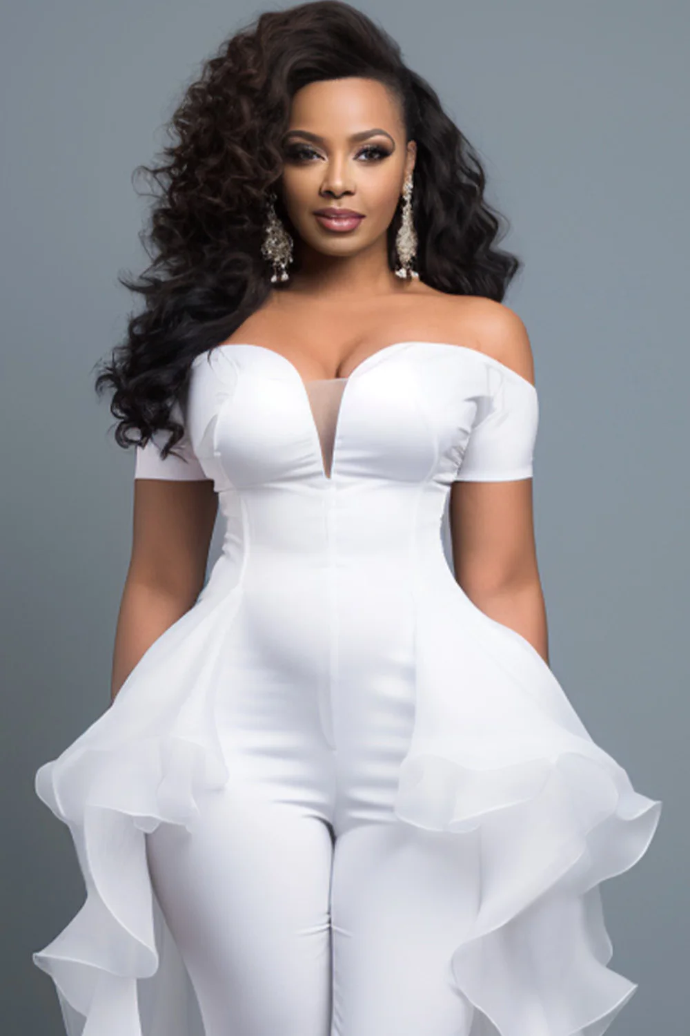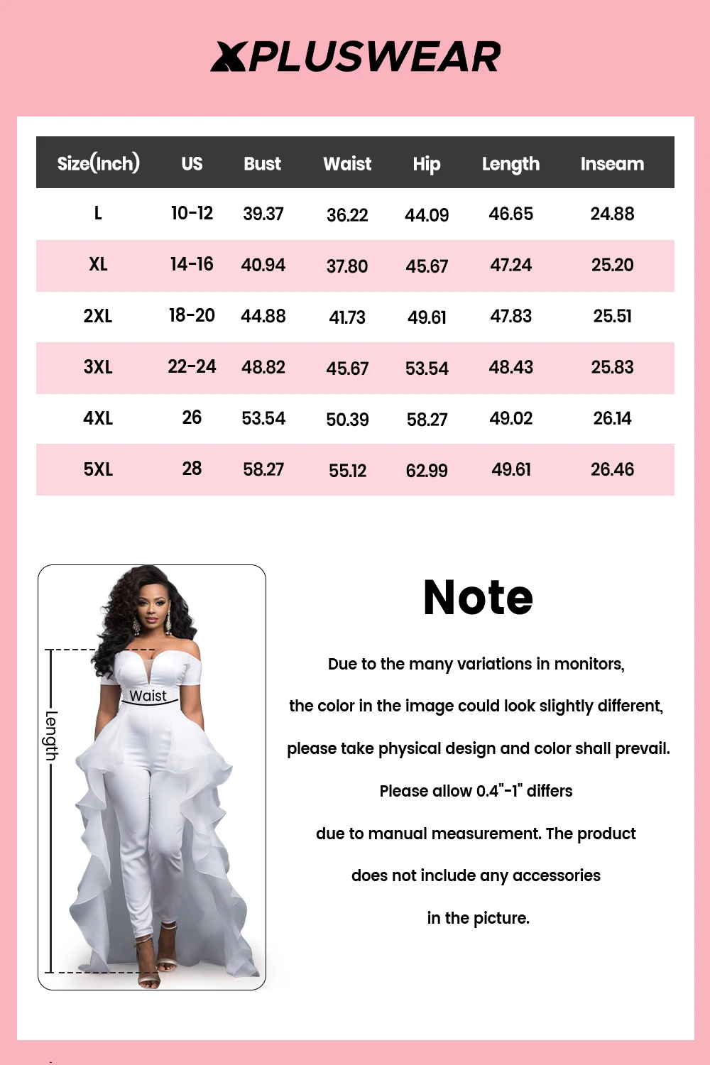 Elevate your wardrobe with this elegant plus-size jumpsuit featuring an off-the-shoulder neckline and short sleeves for a flattering silhouette.