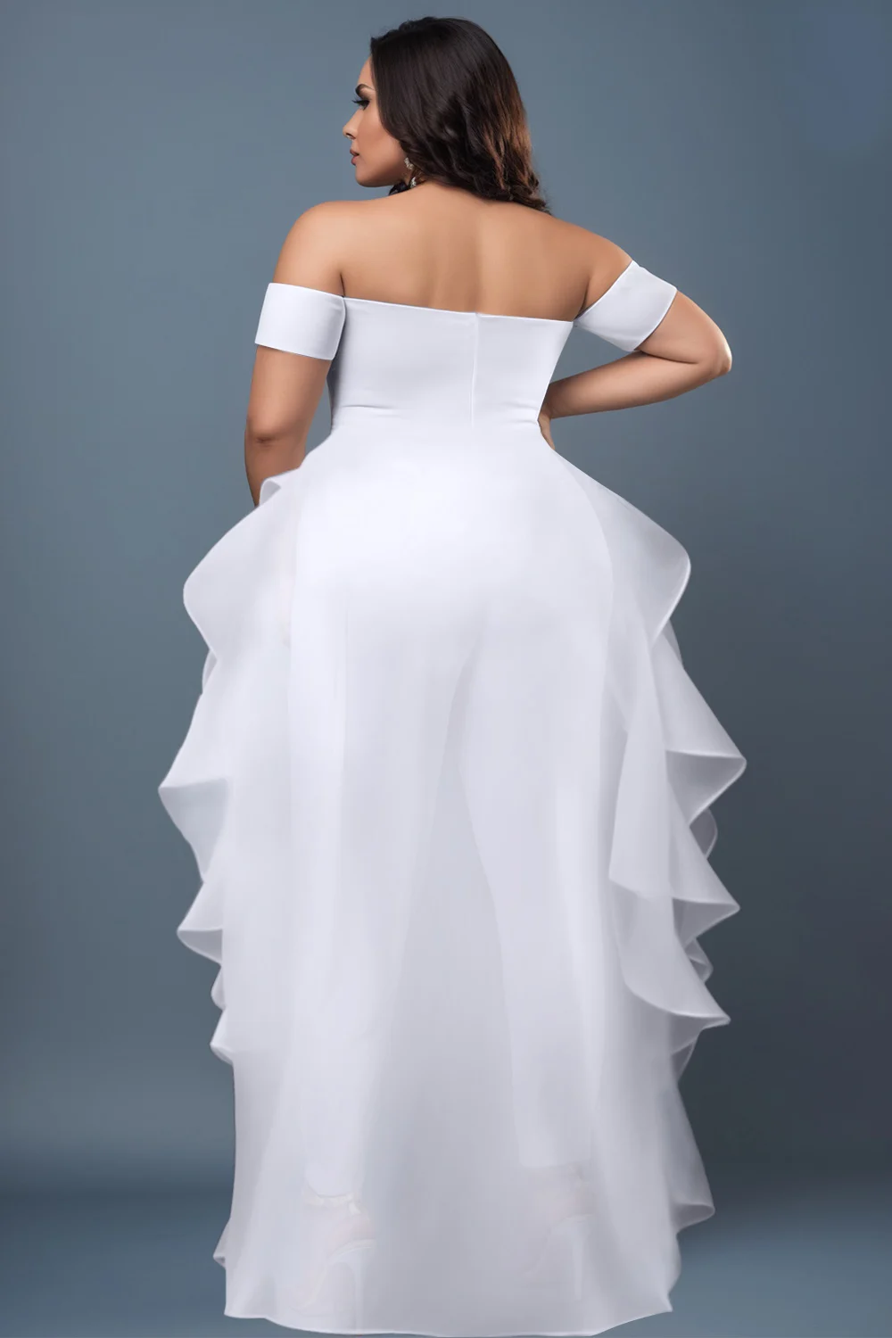 FZ Women's Plus Size Off The Shoulder Short Sleeve With Skirt Overlay Contrast Jumpsuit