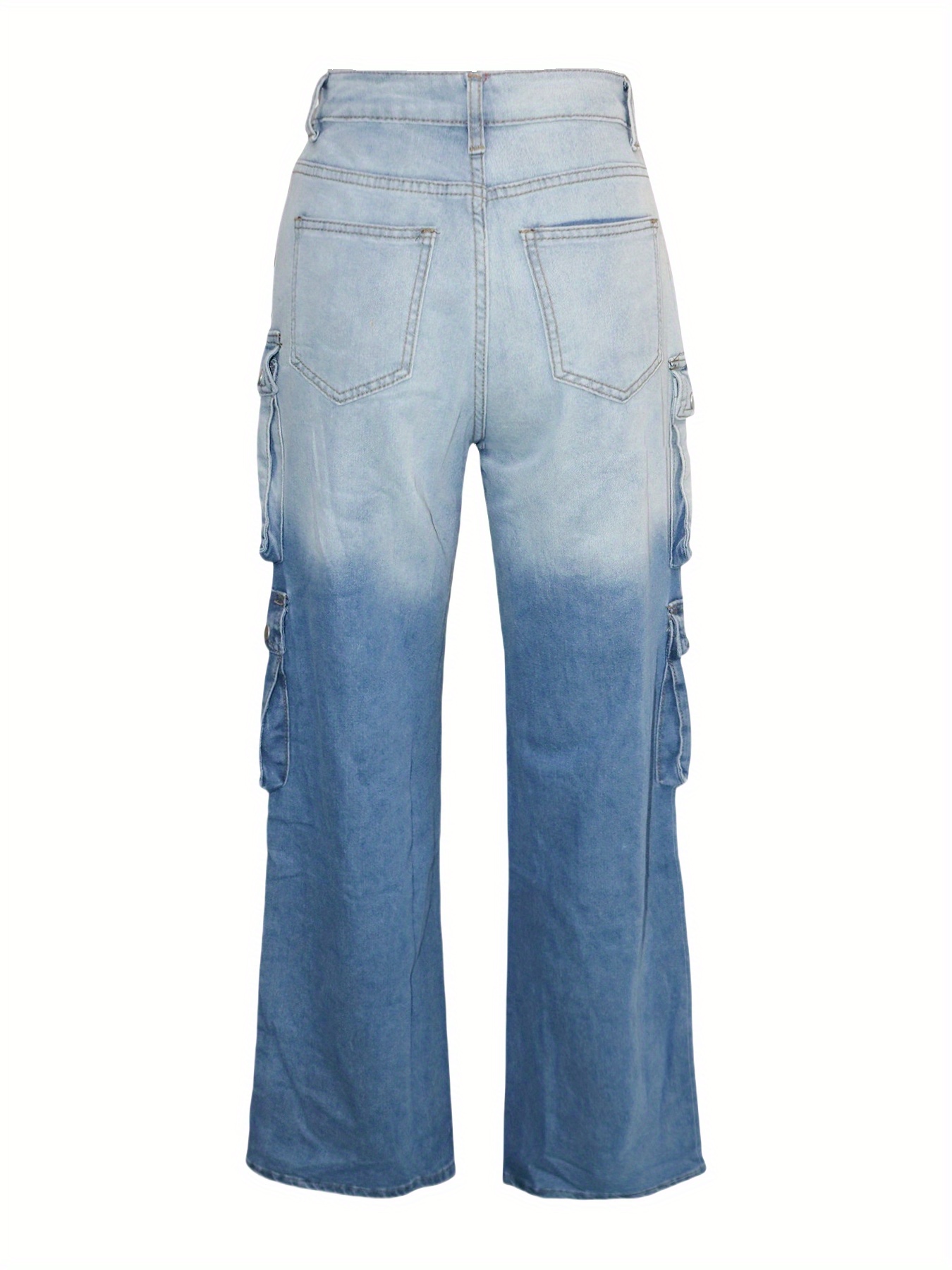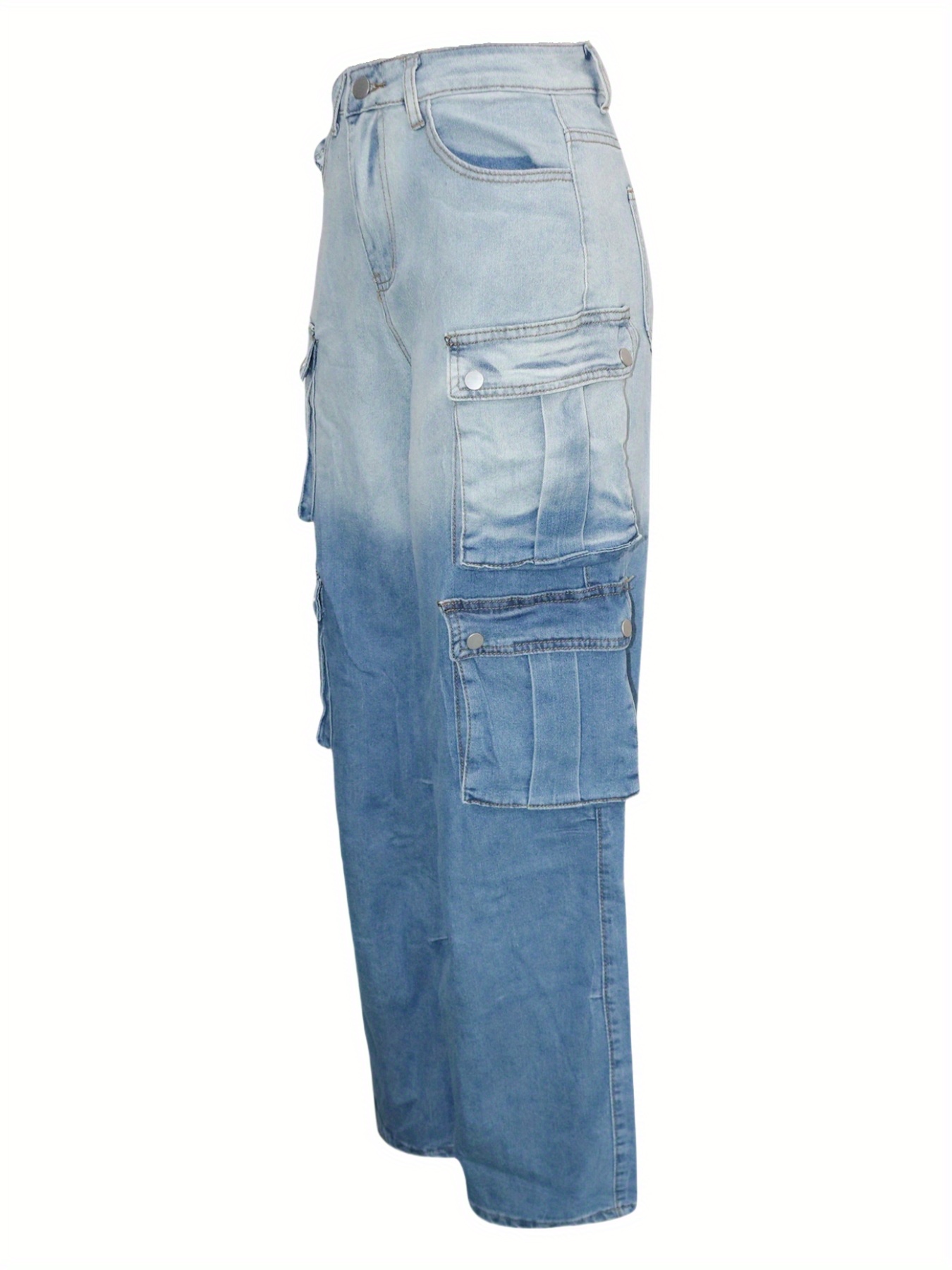 FZ Women'S Street Style Multi-pocket Gradient Cargo Wide-Leg Denim Pants