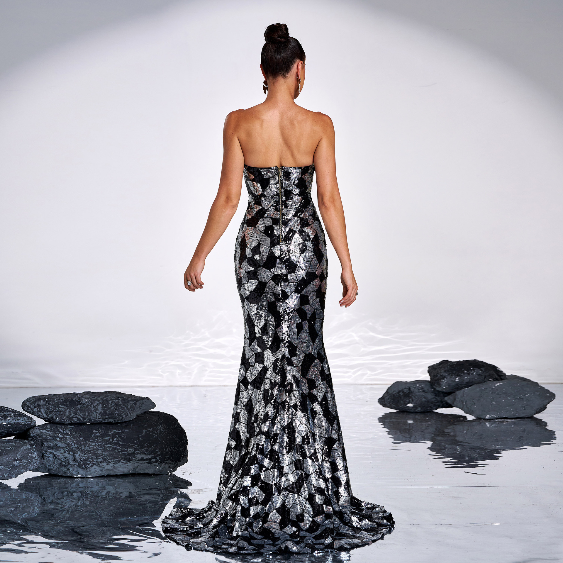 The sequined fabric of this evening dress adds subtle sparkle, making it perfect for evening events that demand style and sophistication. Crafted to offer both comfort and glamour, this sheath dress is a refined choice for your next special occasion.