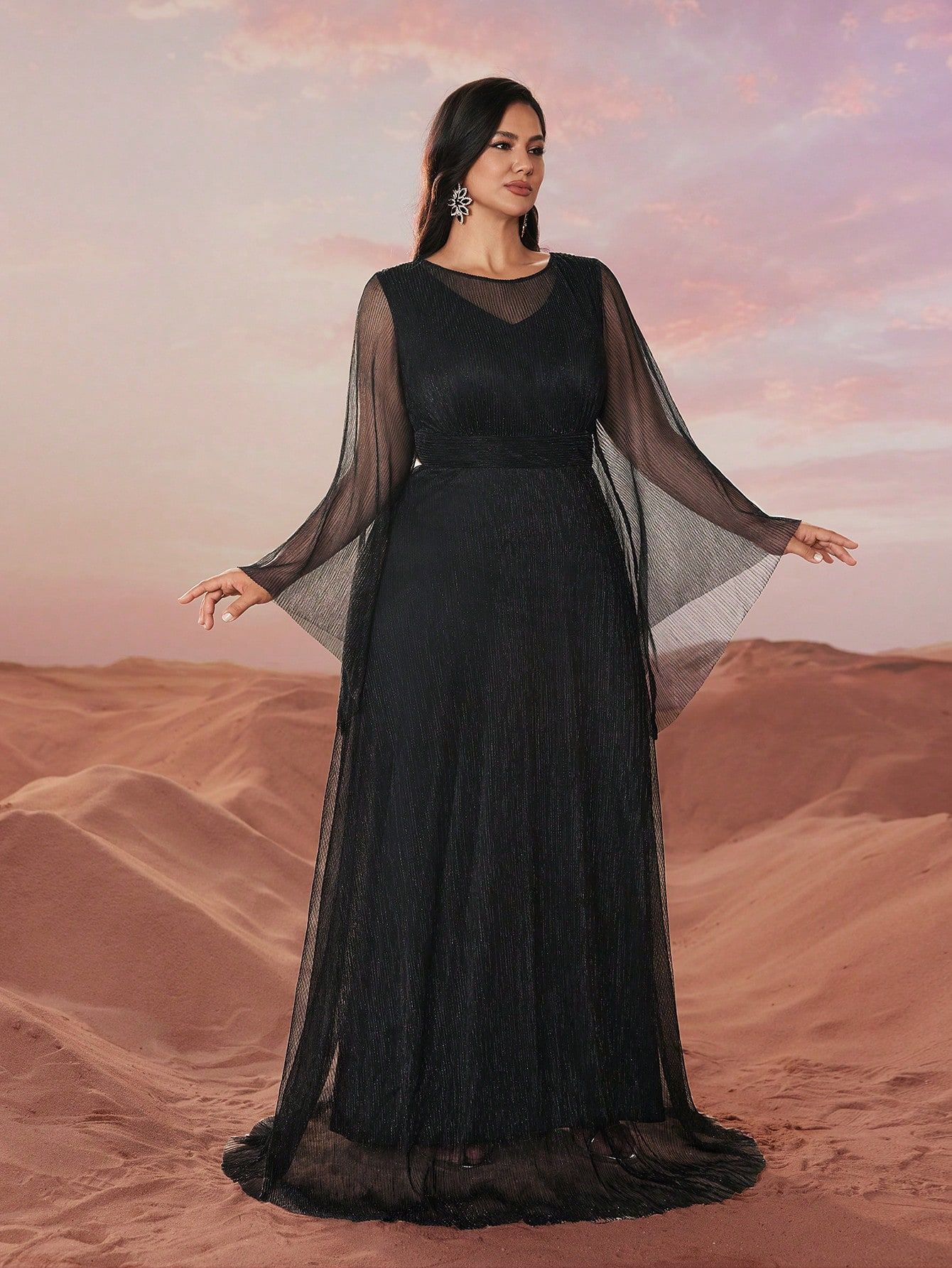 FZ Women's Plus Size Transparent Flare Sleeve Women Maxi Evening Dress