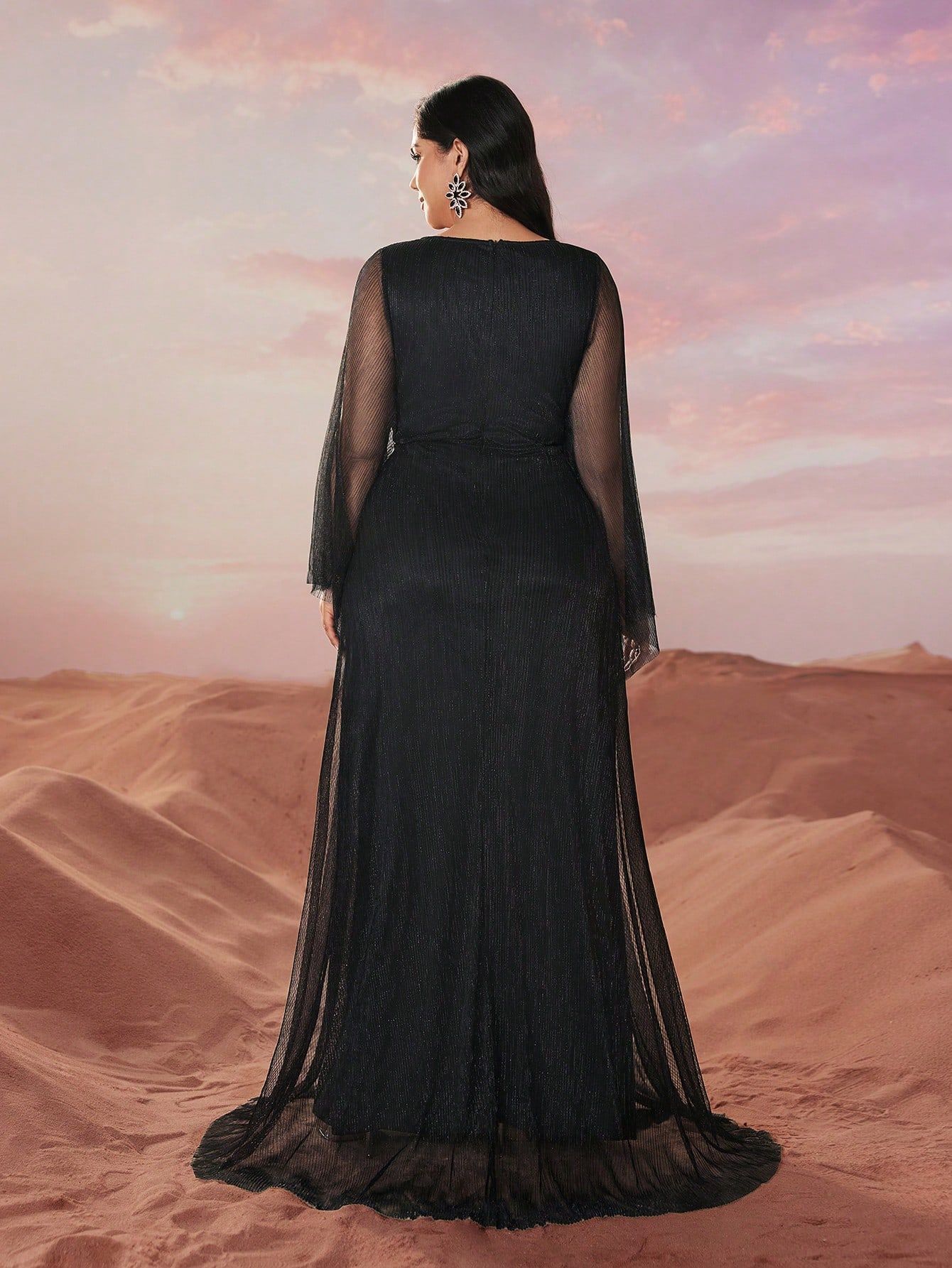 The transparent flare sleeves of this evening dress adds a touch of style, while the plus size design ensures a comfortable and flattering fit for all body types. Look and feel confident in this beautiful maxi dress.