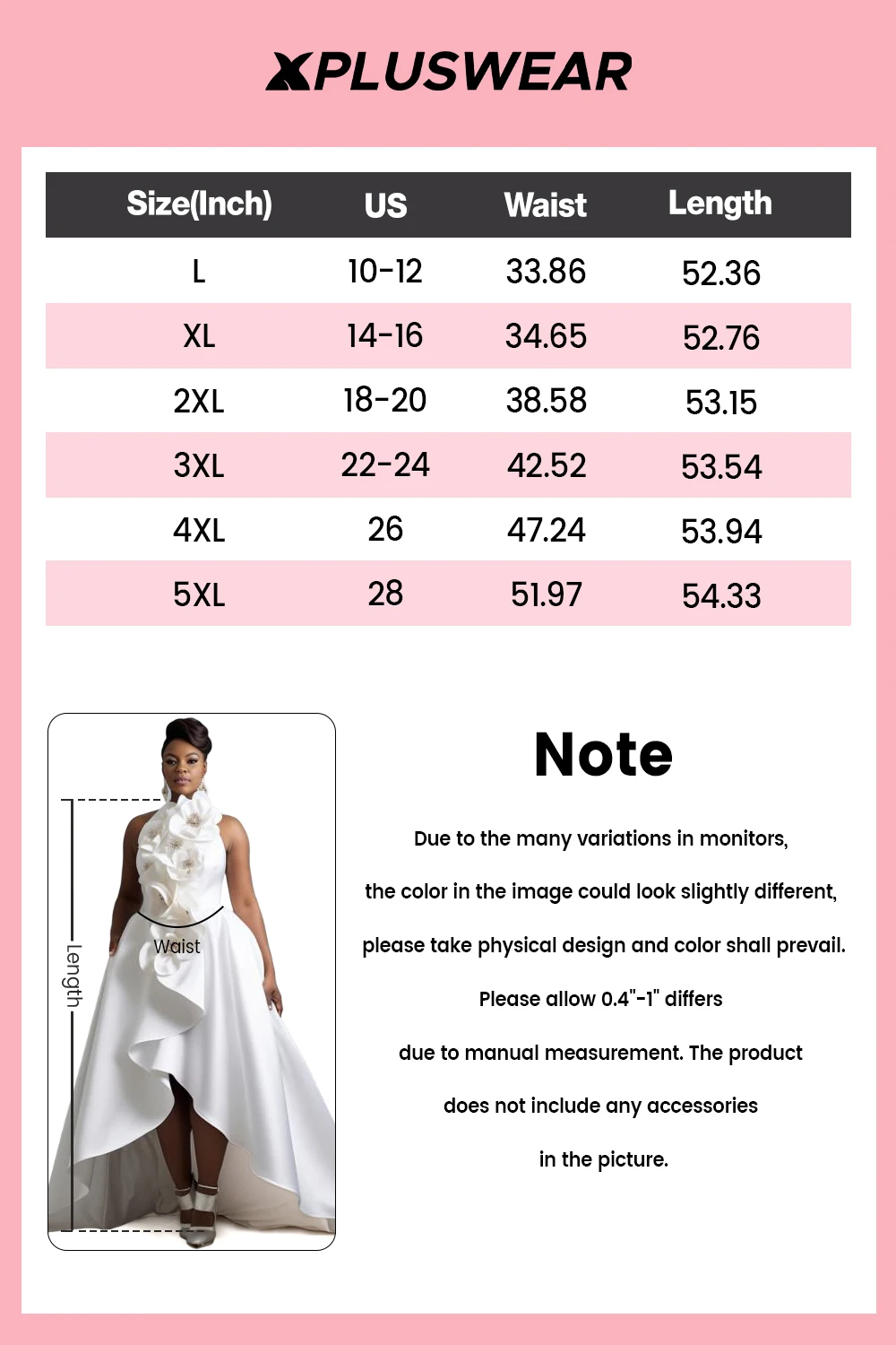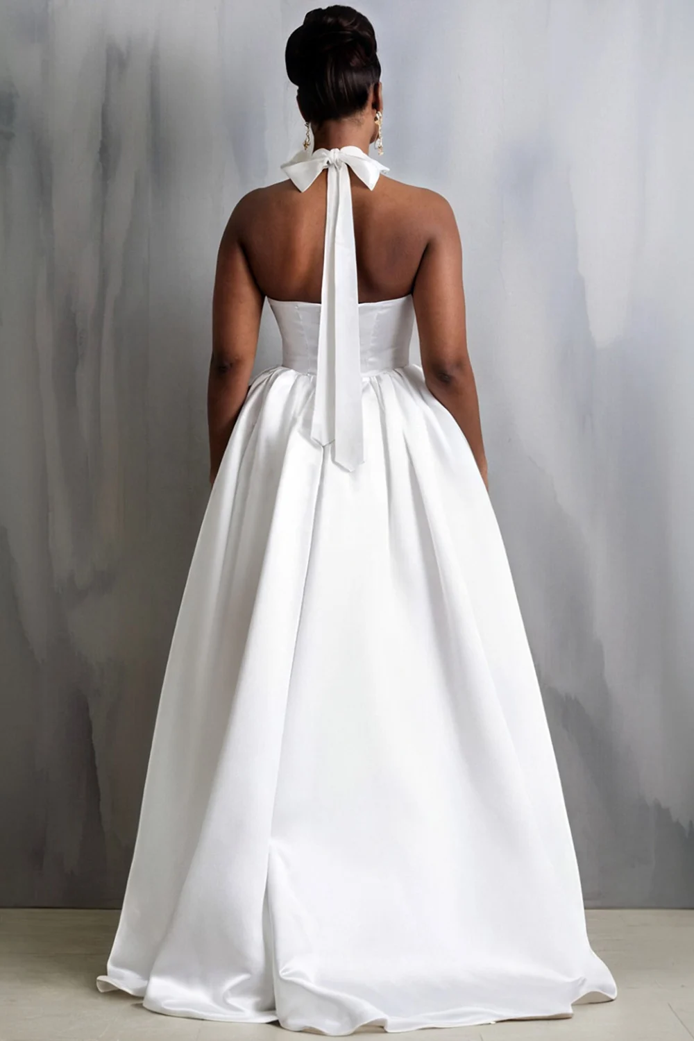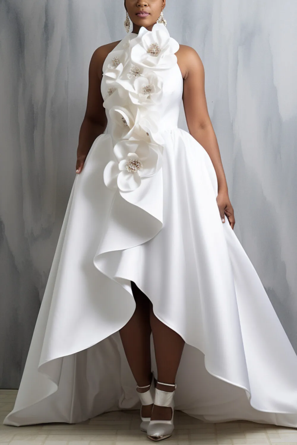 FZ Women's Plus Size White Halter Collar 3D Elegant High Low Hem Satin Maxi Dress