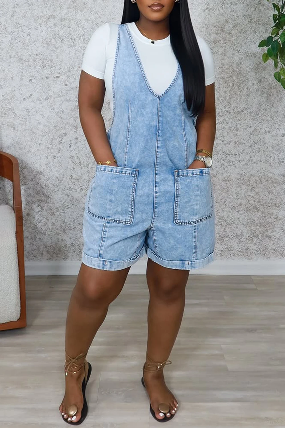 Crafted from soft material, this denim jumpsuit features a flattering V-neck and practical pockets, making it perfect for everyday wear. Its relaxed fit ensures ease of movement while maintaining a chic, casual look ideal for any occasion.