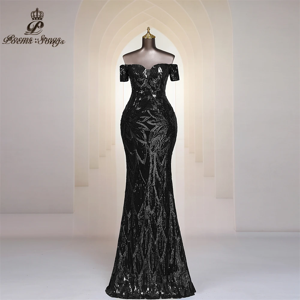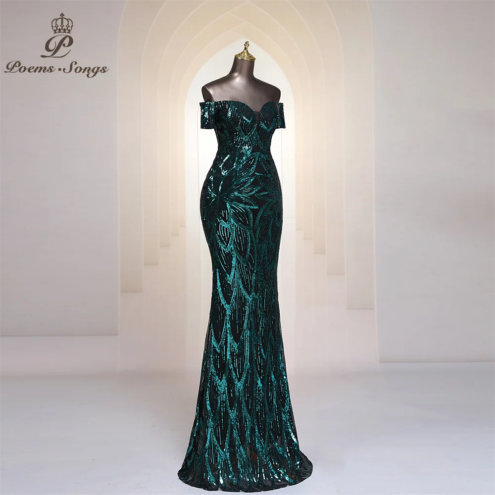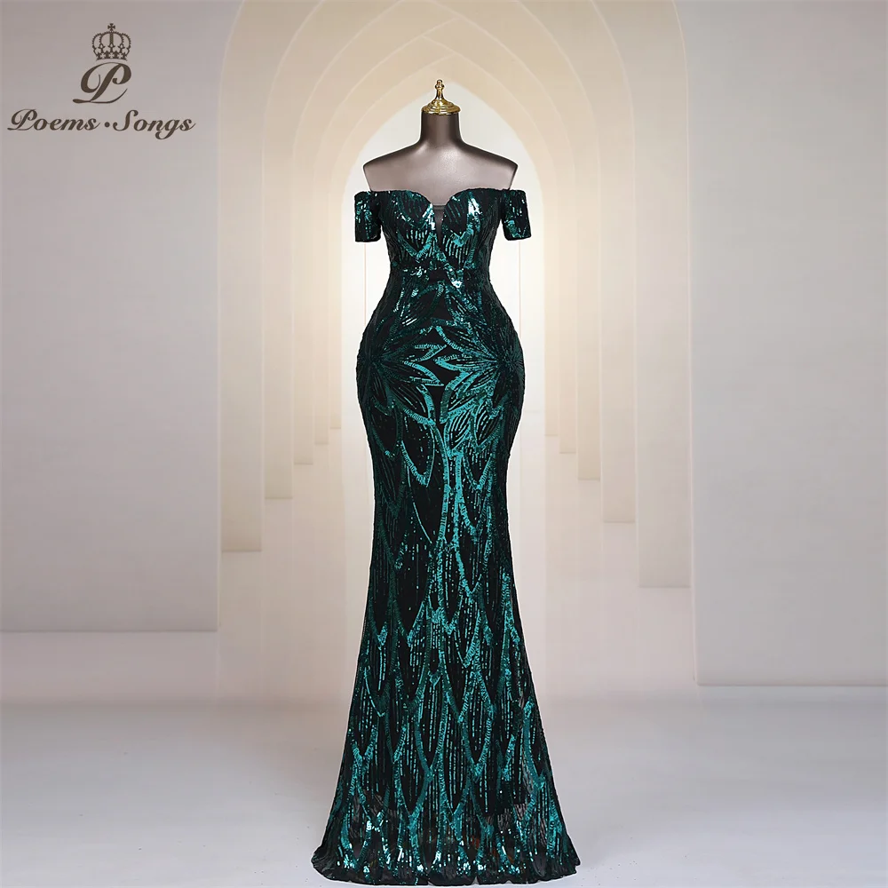 FZ Women's Sequins Off Shoulder Floor Length Mermaid Maxi Evening Dress