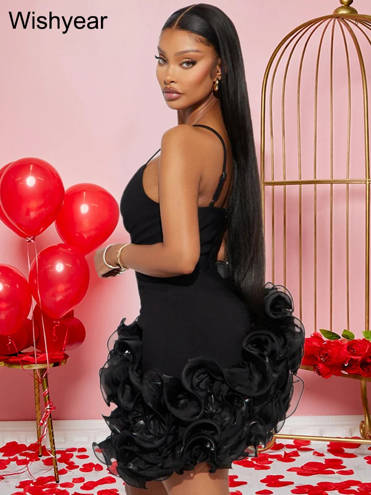 FZ Women's Straps Ruffle Pleated Mini Evening Dress