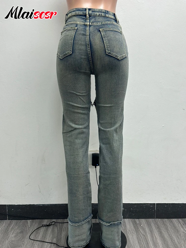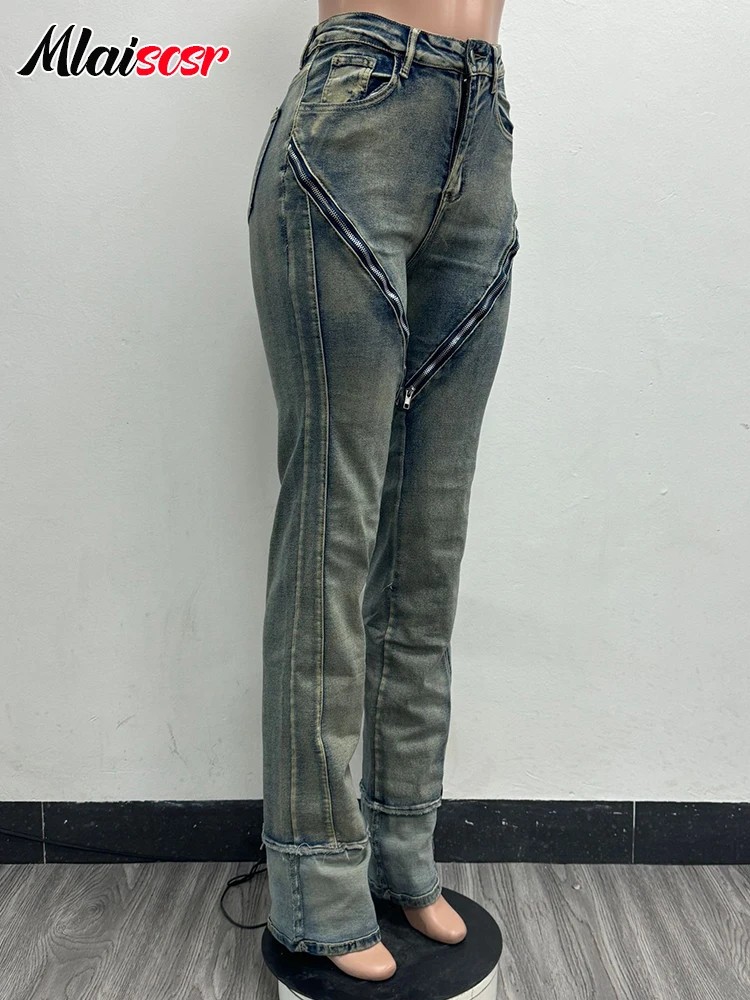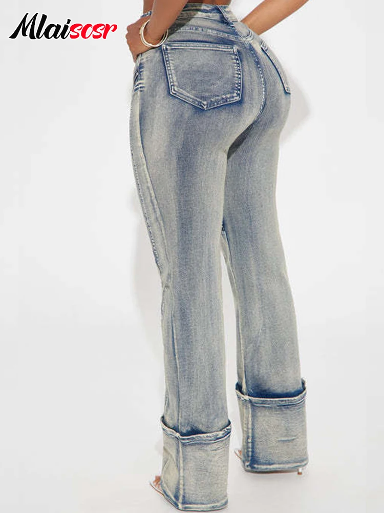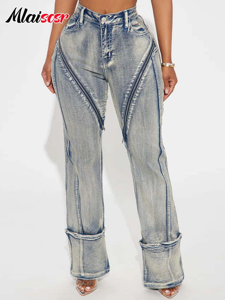 Elevate your street style with these meticulously crafted high-waist denim pants.